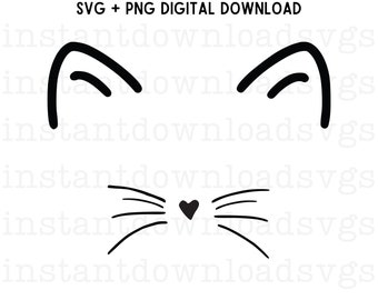 Cat Face Svg Cat Ears Png Nose Svg Whiskers Svg Kitten Face Svg