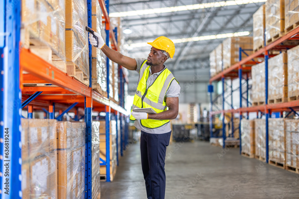 Premium AI Image a clerk is checking goods in a large warehouse room