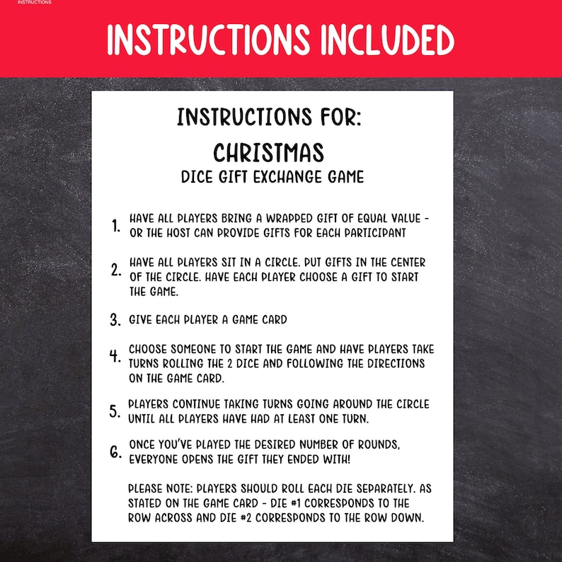 Printable Christmas Dice Game Gift Exchange Rules Christmas Etsy