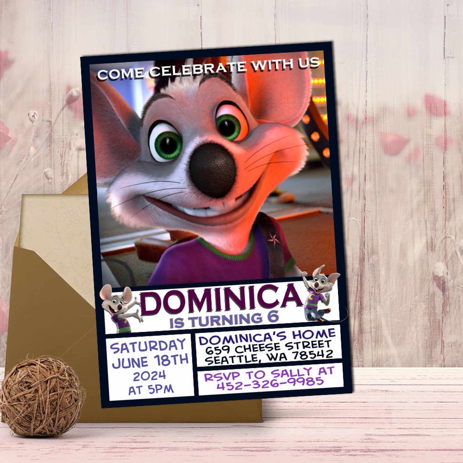 Printable Chuck E Cheese Birthday Party Invitation Etsy