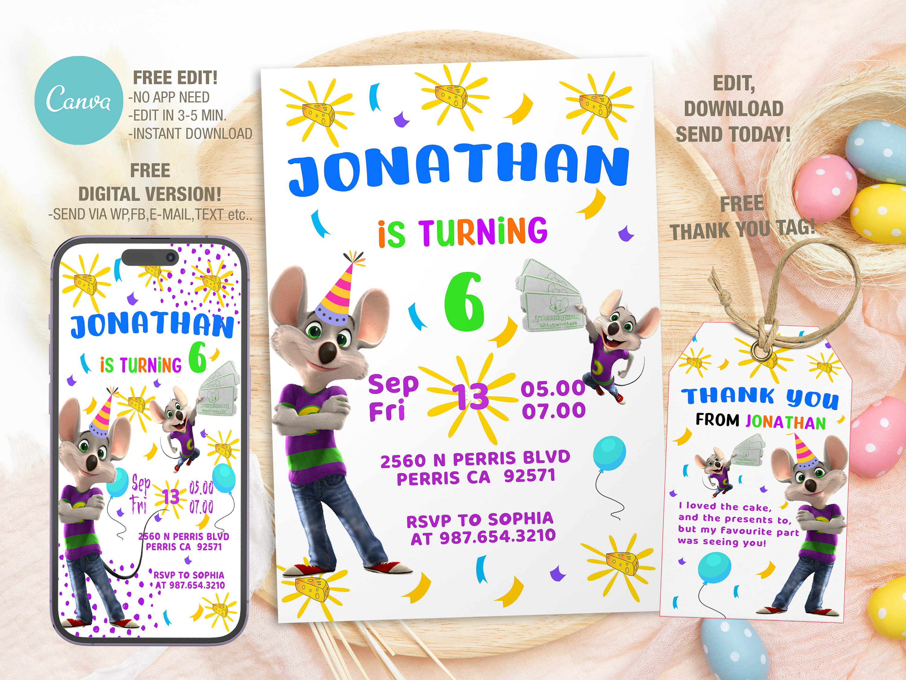 Editable Chuck E Cheese Birthday Invitation Template Printable