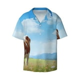 Fotbe Cow Grazing Nature print Short Sleeve Button Down Shirts for Men