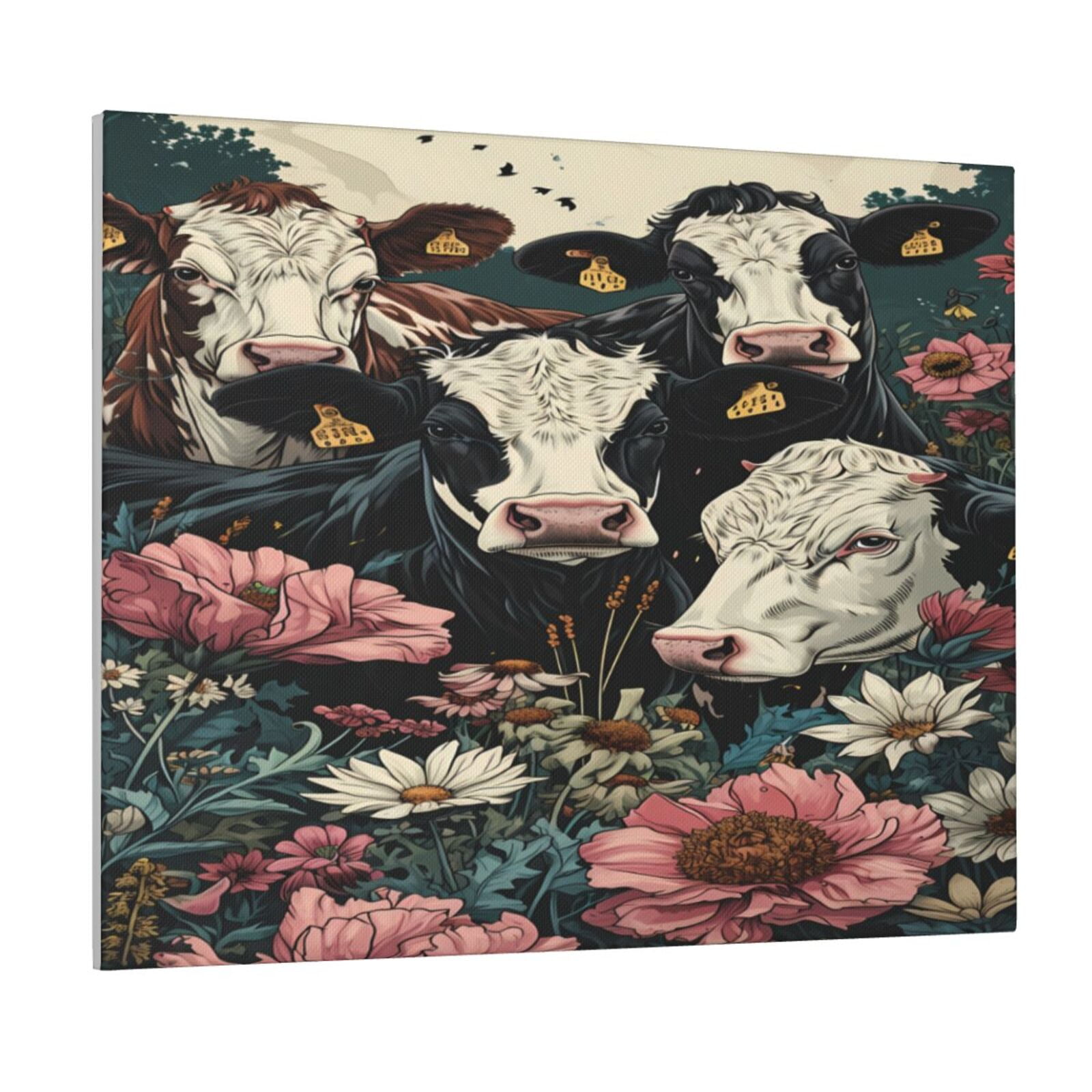 Fuzoiu Vintage Sunflower Cow Print Canvas Wall Art for Bathrooms Wall