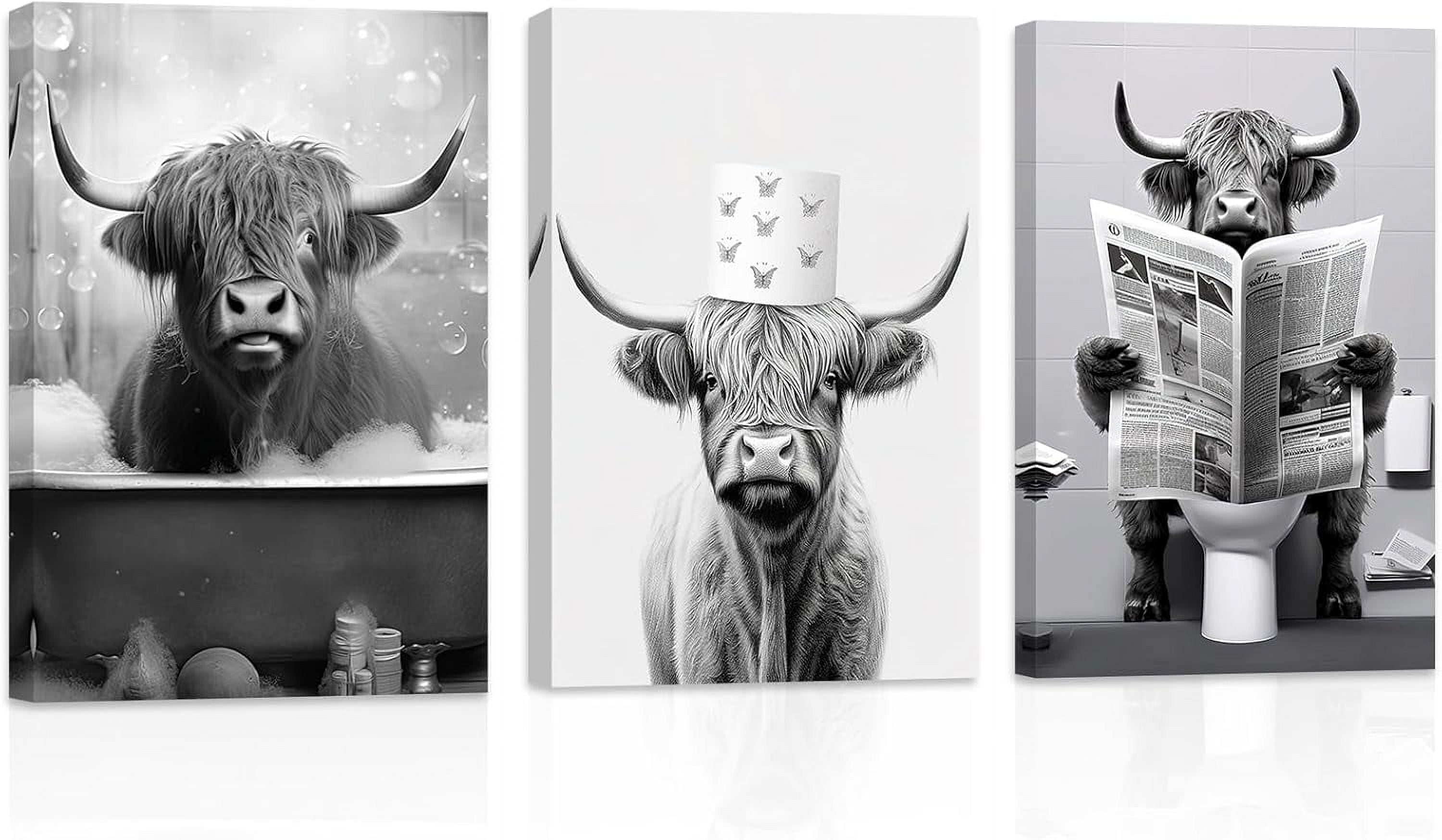 ZHONGYUTONG Funny Bathroom Animal Wall Art 3 Pieces Cute Highland Cow