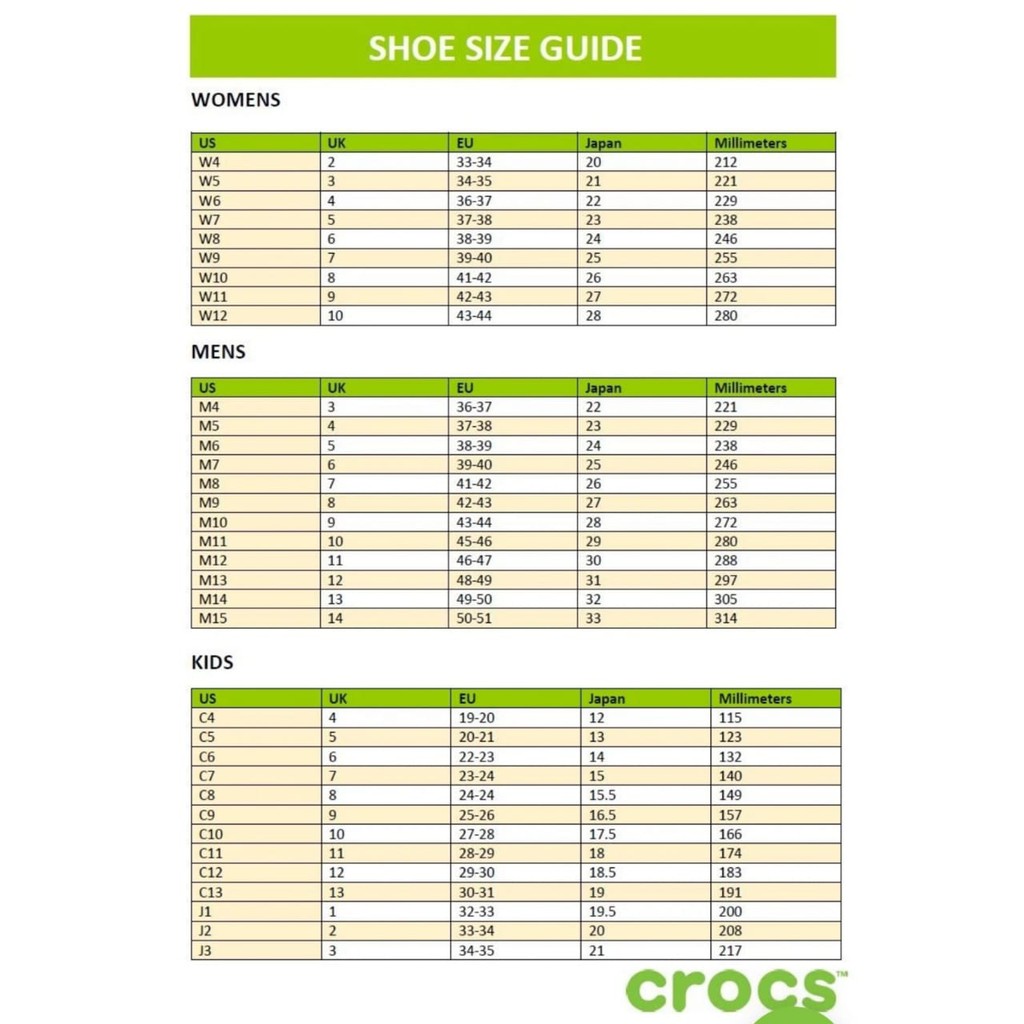 Crocs Shoe Size Chart:Kids Sizing Crocs