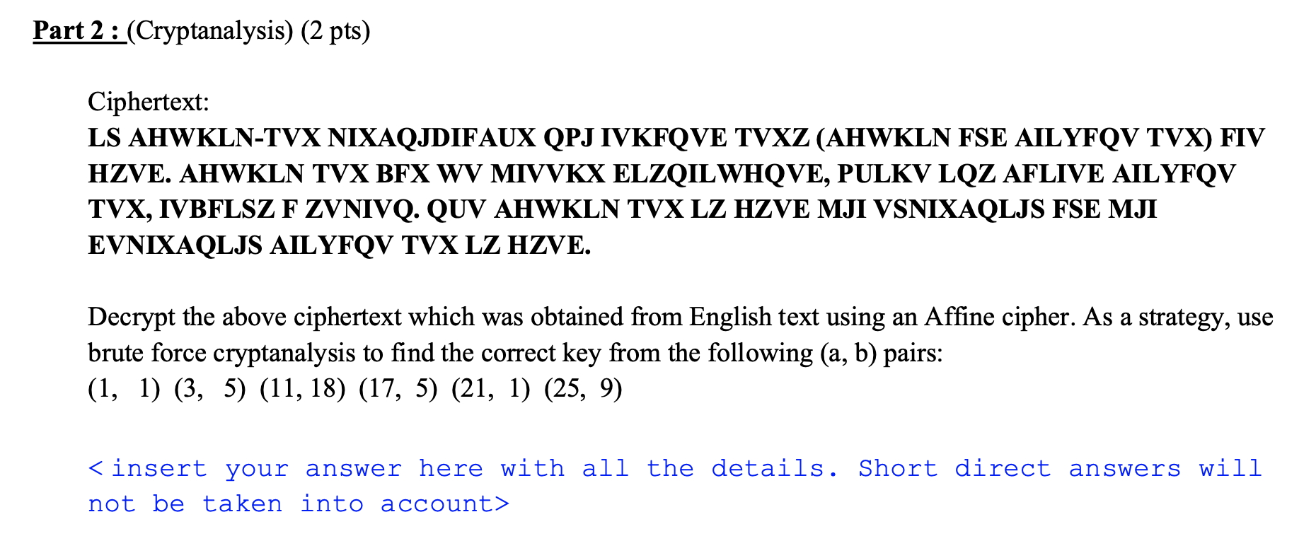 Solved Ciphertext: LS AHWKLN TVX NIXAQJDIFAUX QPJ IVKFQVE Chegg com