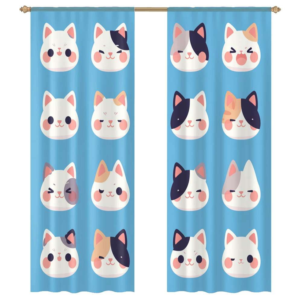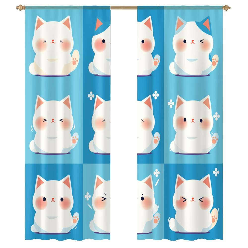 Cute Cat Sheer Window Curtains for Living Room Kitchen Bedroom Tulle