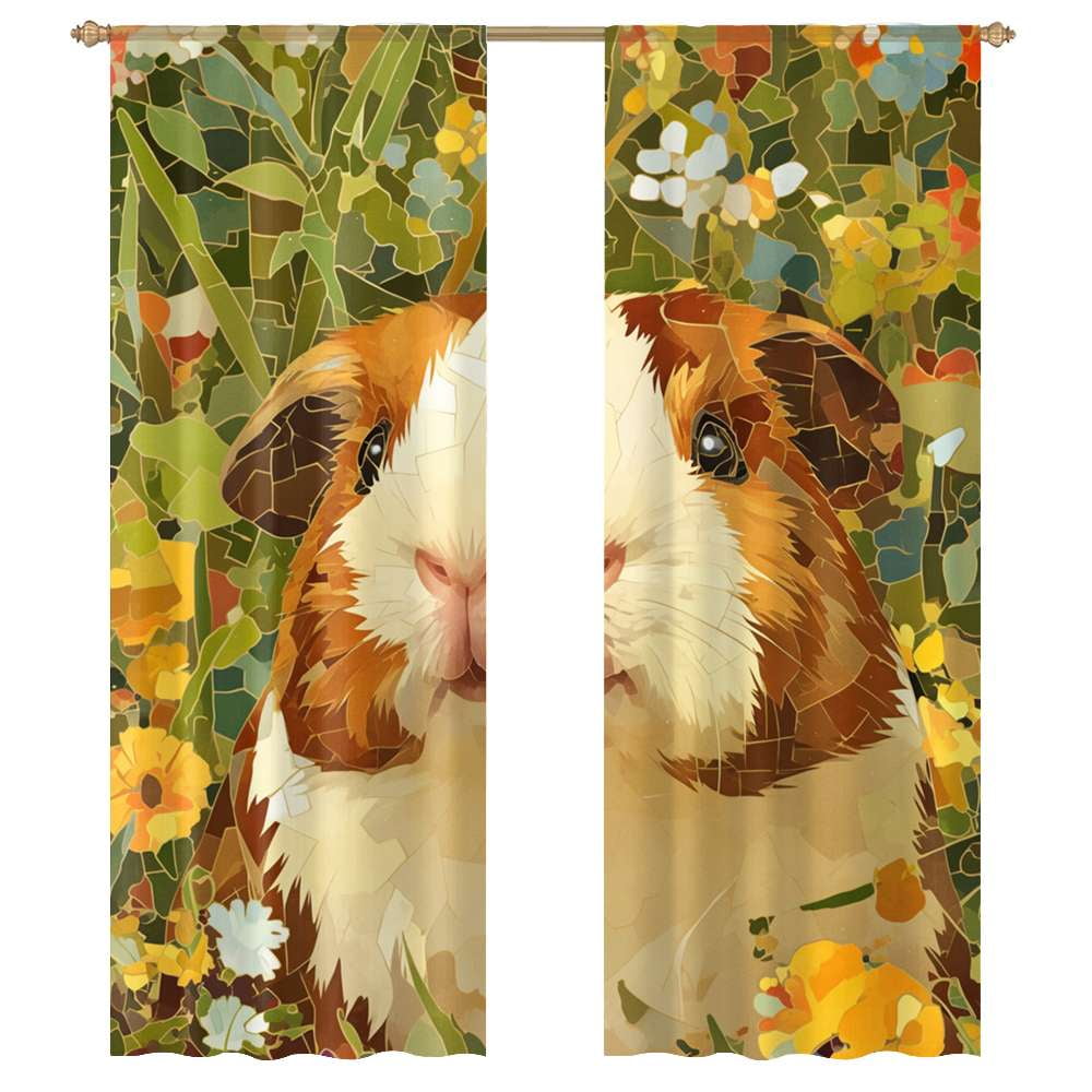 Cute Guinea Pig Tulle Curtains For Living Room Chiffon Sheer Voile