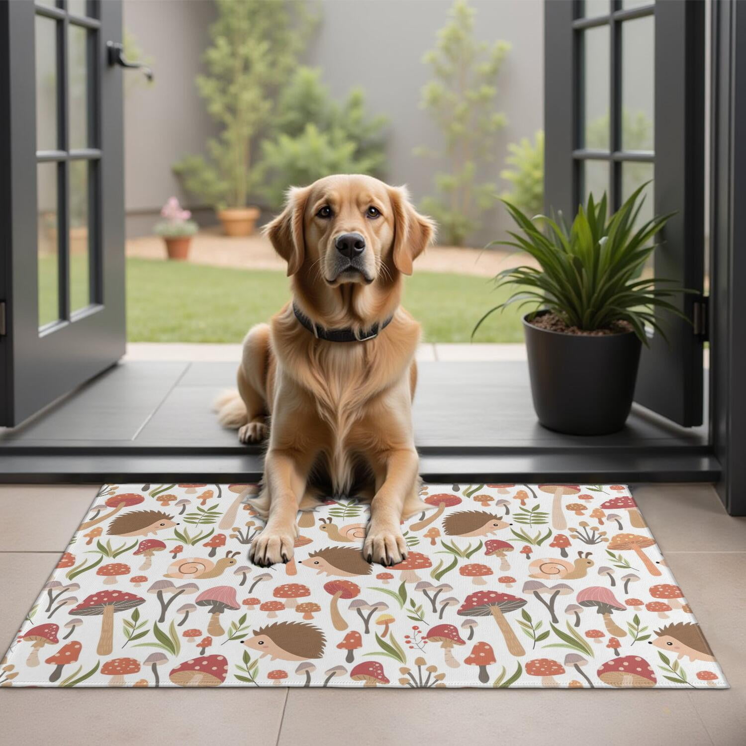 Cute Hedgehogs and Red Mushrooms Snails Pattern Door Rugs Washable Non