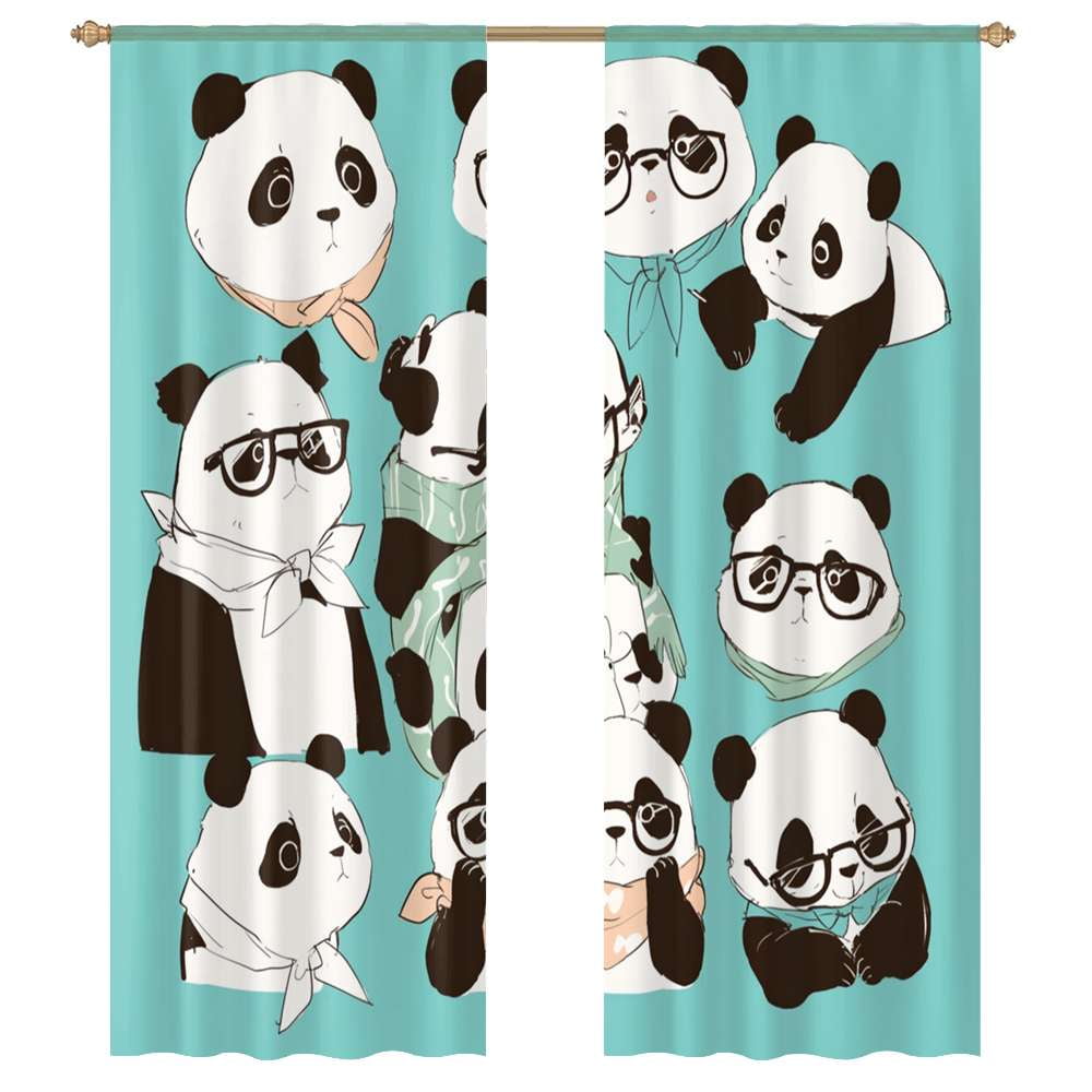 Cute Panda Tulle Curtains For Living Room Chiffon Sheer Voile Kitchen