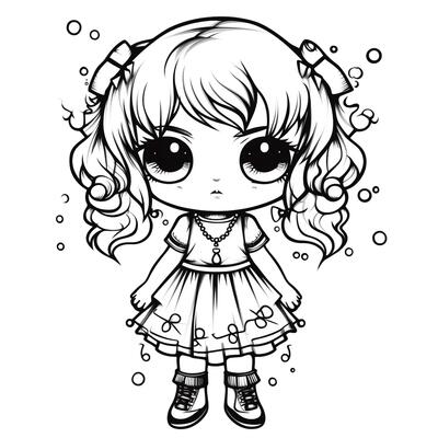 Cute Fashion Chibi Girl Coloring Page Graphic by Forhadx5 · Creative