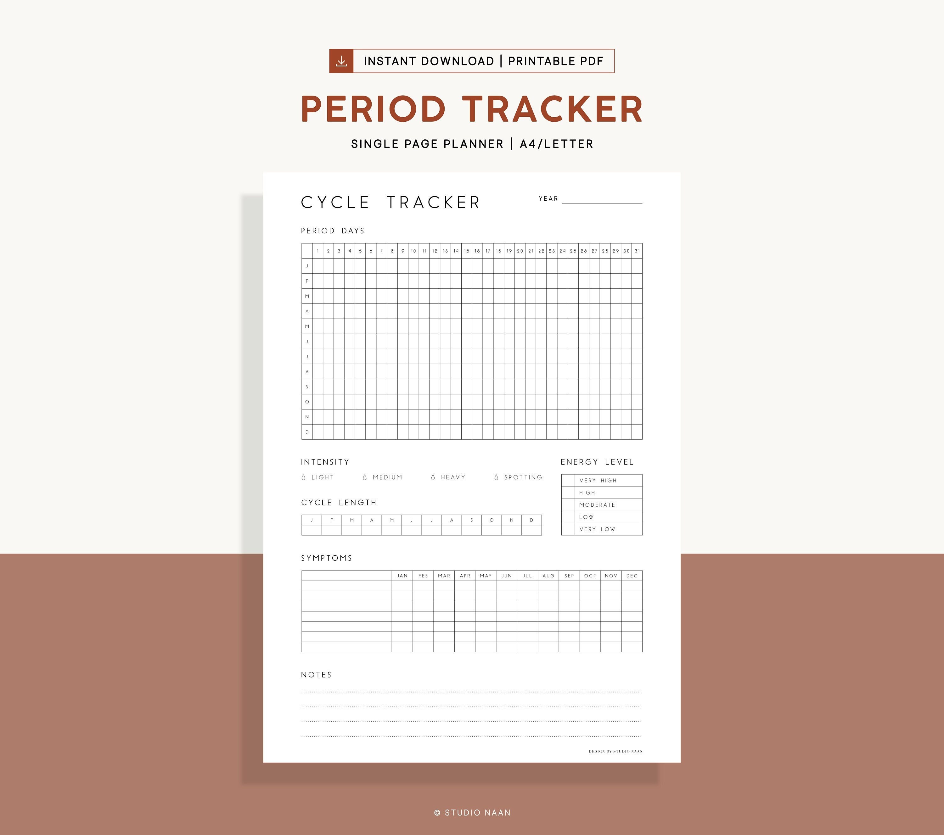 Period Planner Printable Cycle Tracker Yearly Menstruation Journal