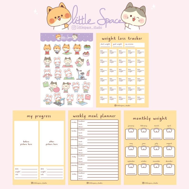 Weight Loss Tracker With Cute Characters Weight Loss Planner Etsy