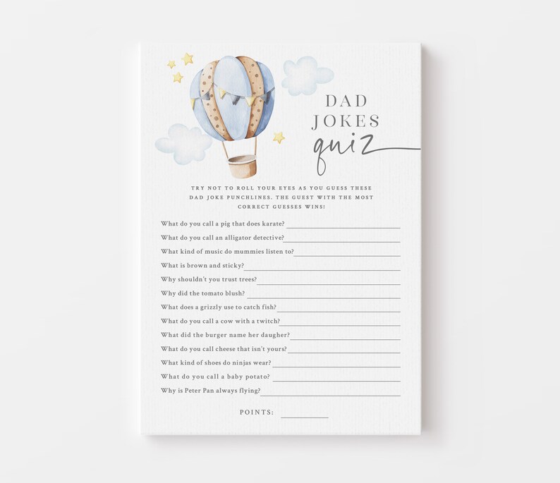 Dad Jokes Baby Shower Game Blue Hot Air Balloon Baby Shower