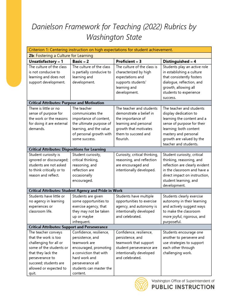 Danielson 2022 Rubrics Wa Criteria Critical Attributes PDF Teachers