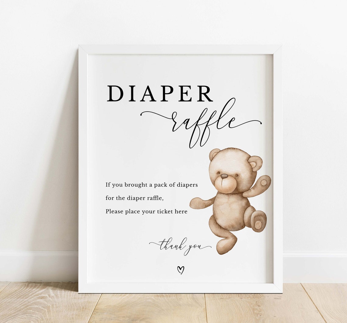 Diaper Raffle Sign Printable Template Bear Theme Baby Shower Etsy