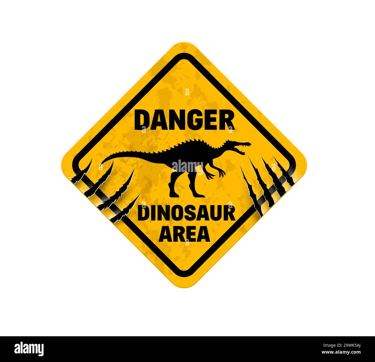 Spinosaurus dinosaur warning sign with claw mark scratches Vector