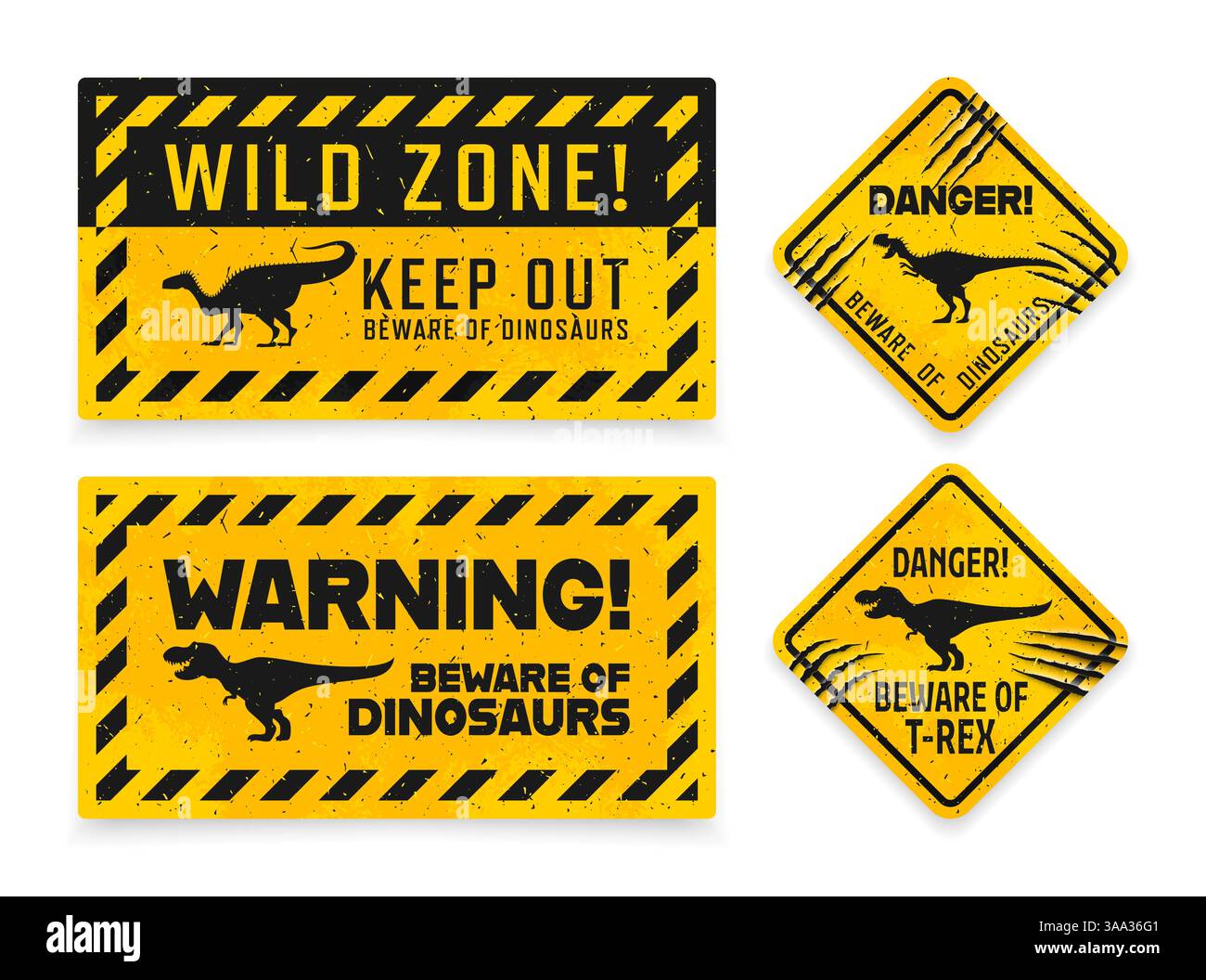 Dinosaur warning grunge signs with dino silhouette 49783253 Vector Art