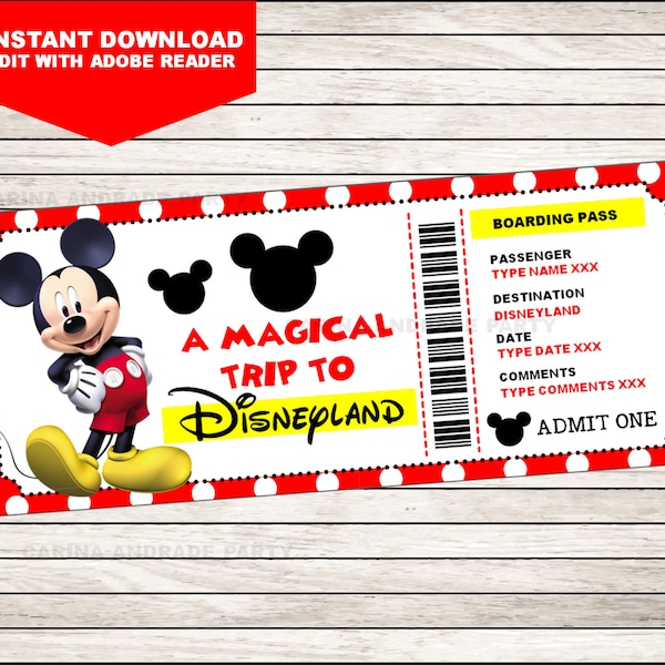 Editable Printable Ticket to Disneyland Surprise Trip Etsy Australia