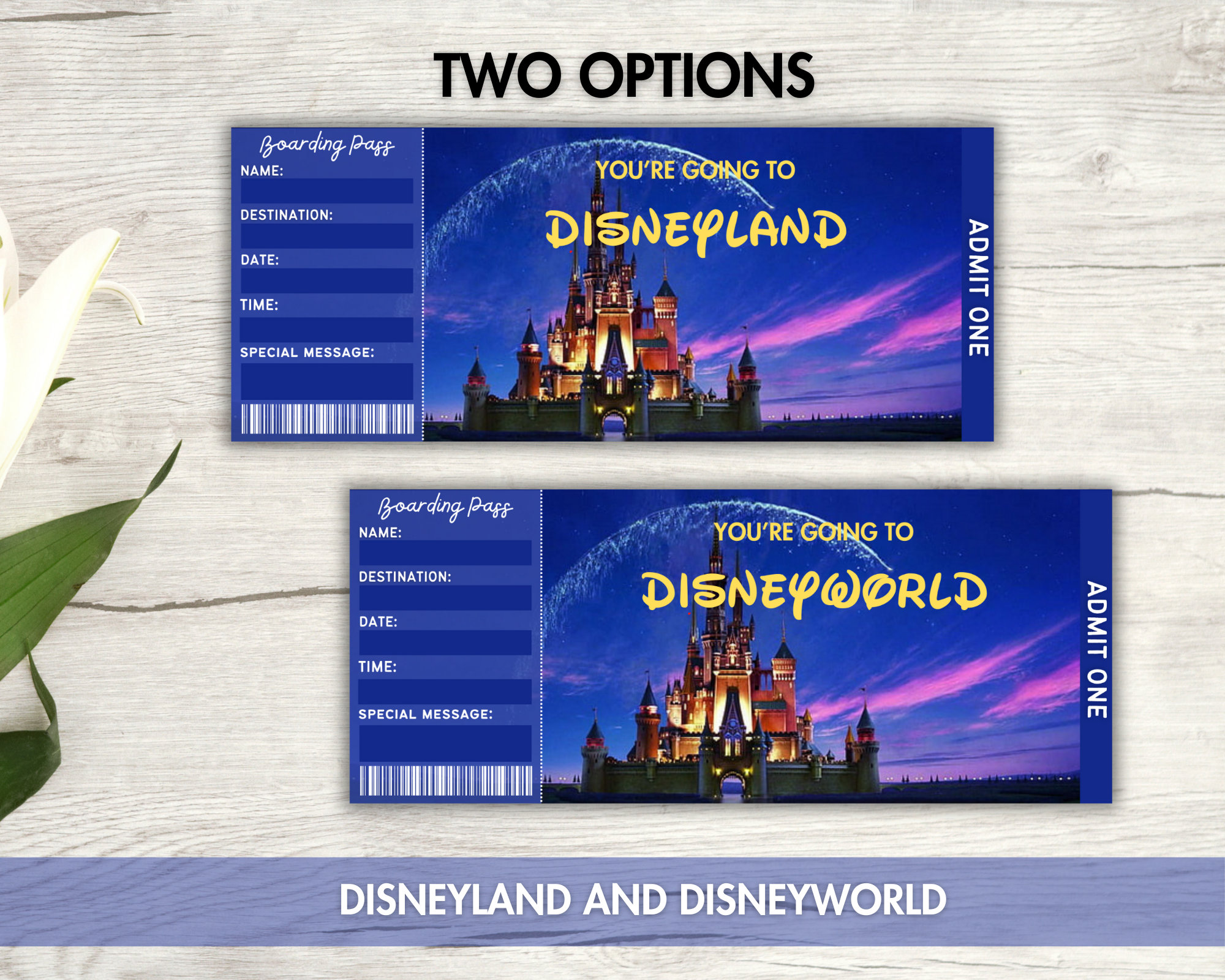 Printable Ticket to Disneyland Surprise Trip Birthday Gift