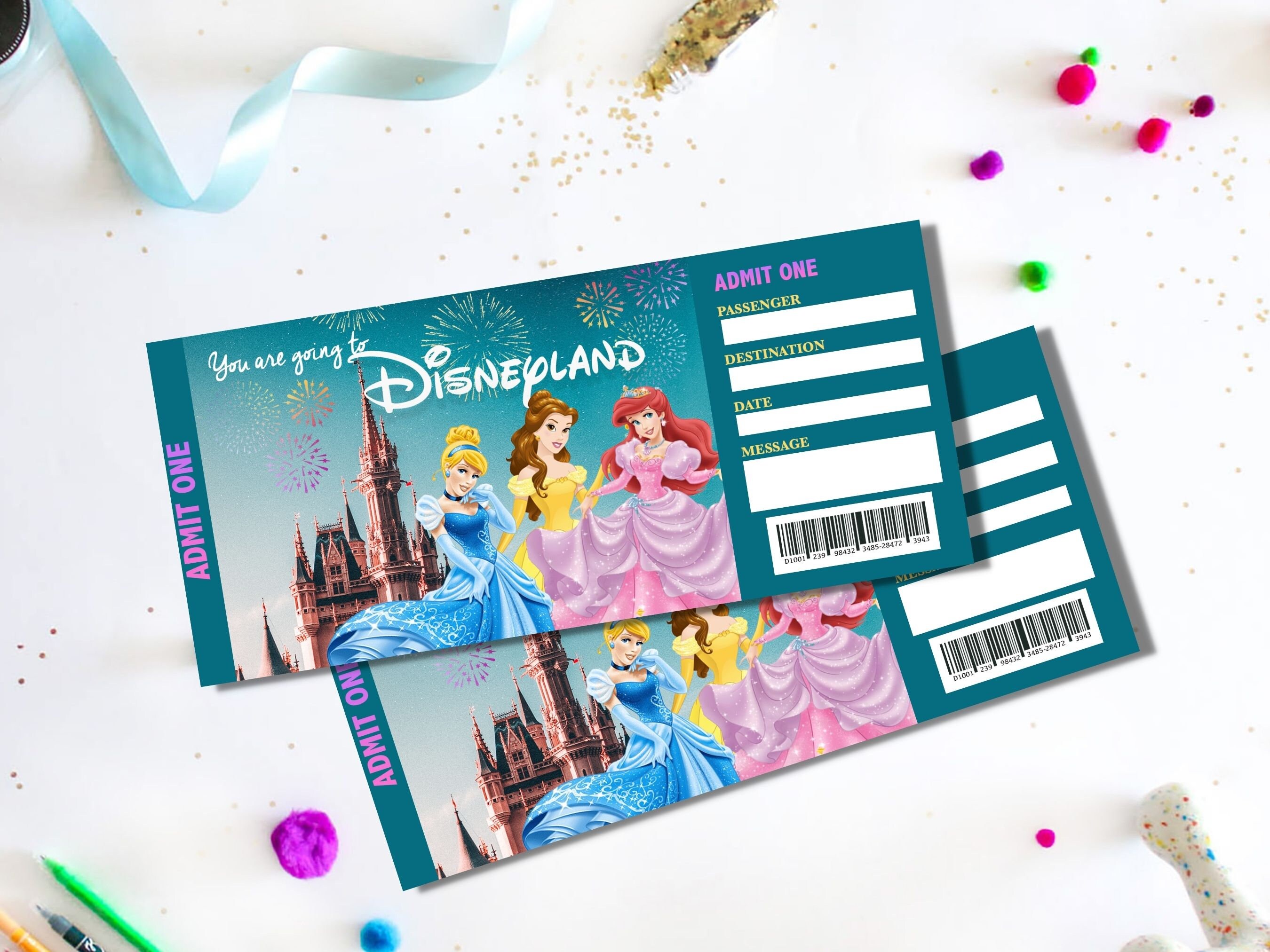 Disneyland Ticket Printable Theme Park Disney World Surprise Reveal