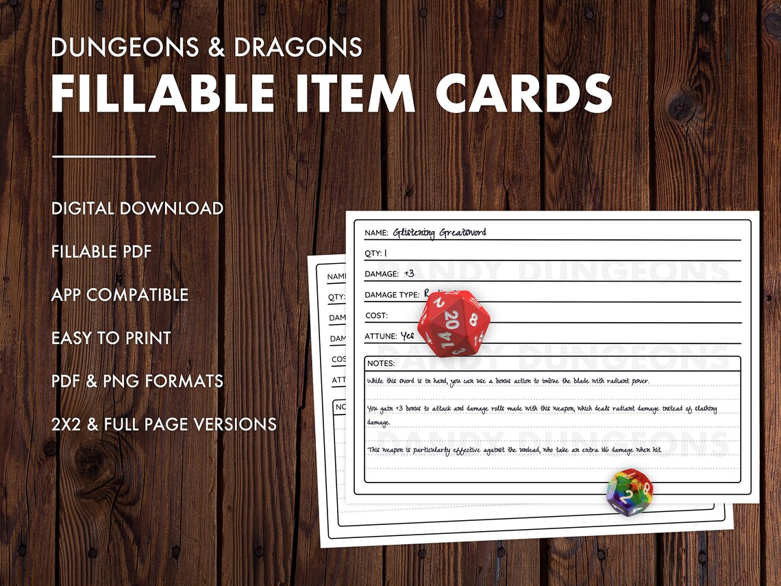 Item Cards Dnd 5e Printable / Fillable PDF Item Card Template Digital