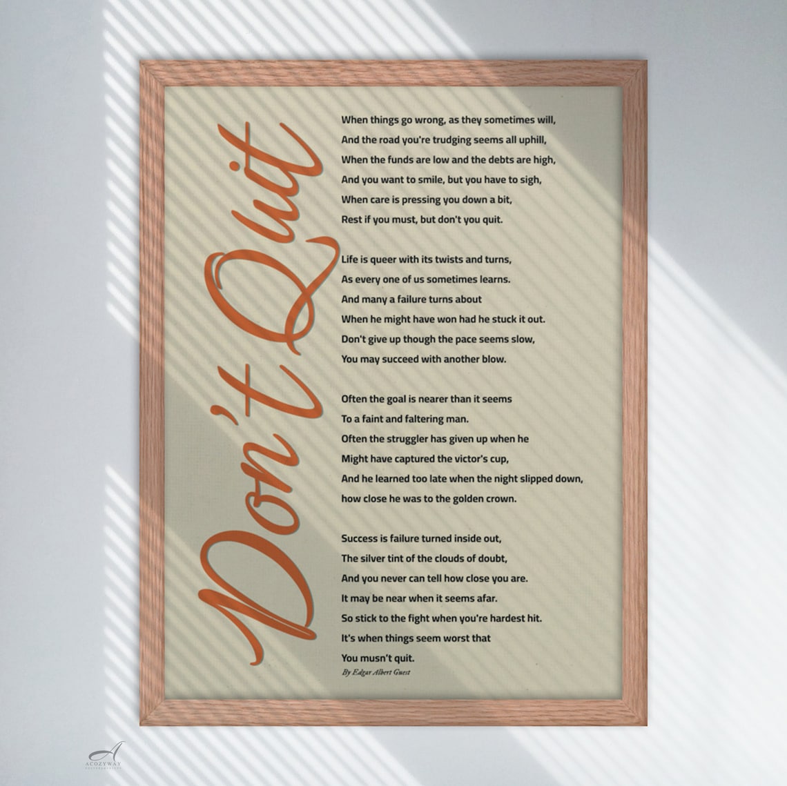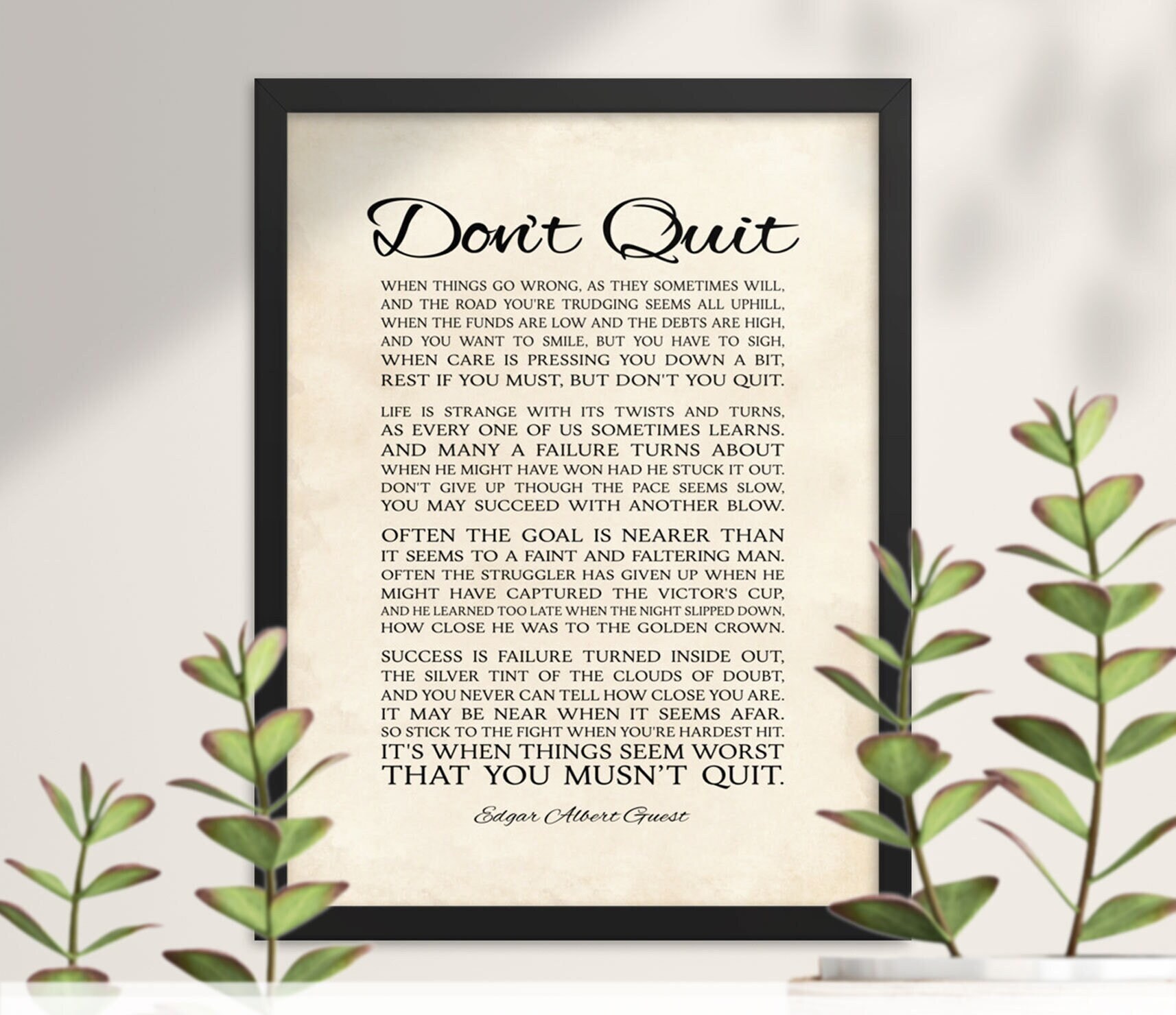 Don #39 t Quit Poem by Edgar Albert Guest framed Poetry Print Inspiration