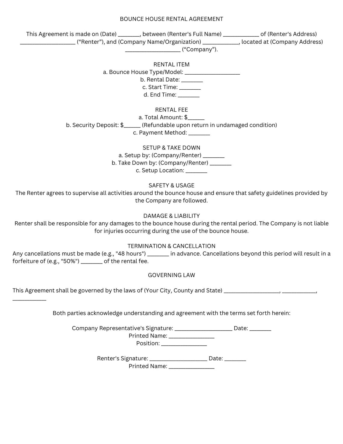 Free Printable Bounce House Rental Agreement Printable Word Searches
