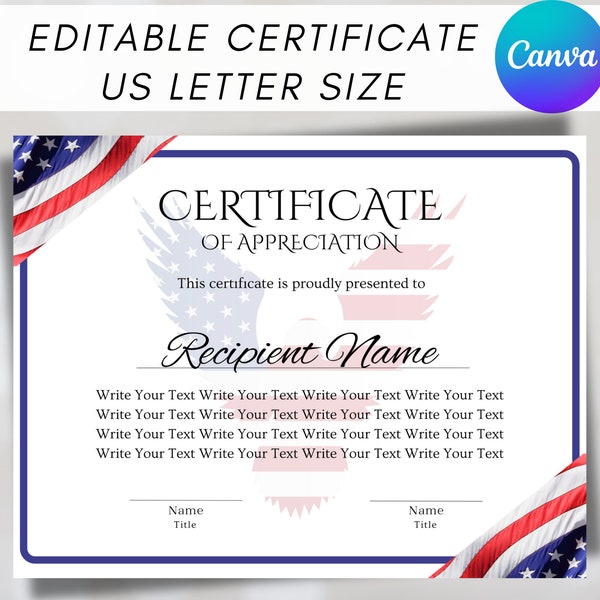 Custom Veterans Certificates: Veterans Day Gifts Editable
