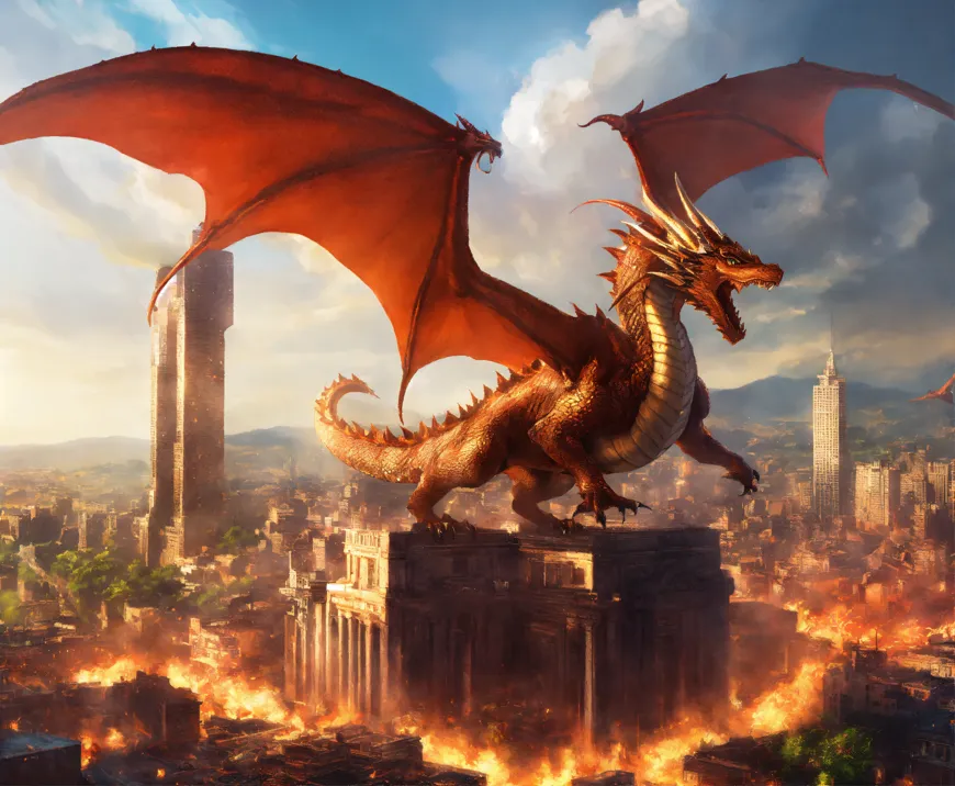 Stunning digital illustration of a red dragon from a mythical world