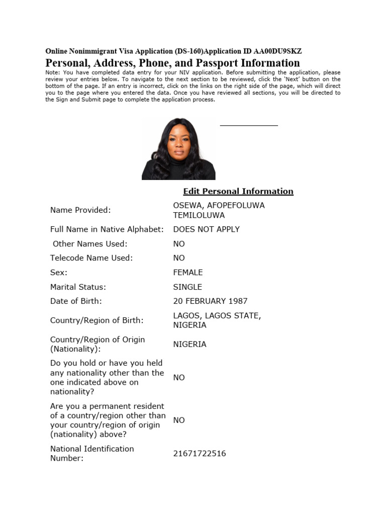 Online Ds 160 Nonimmigrant Visa Application MS Osewa PDF Travel