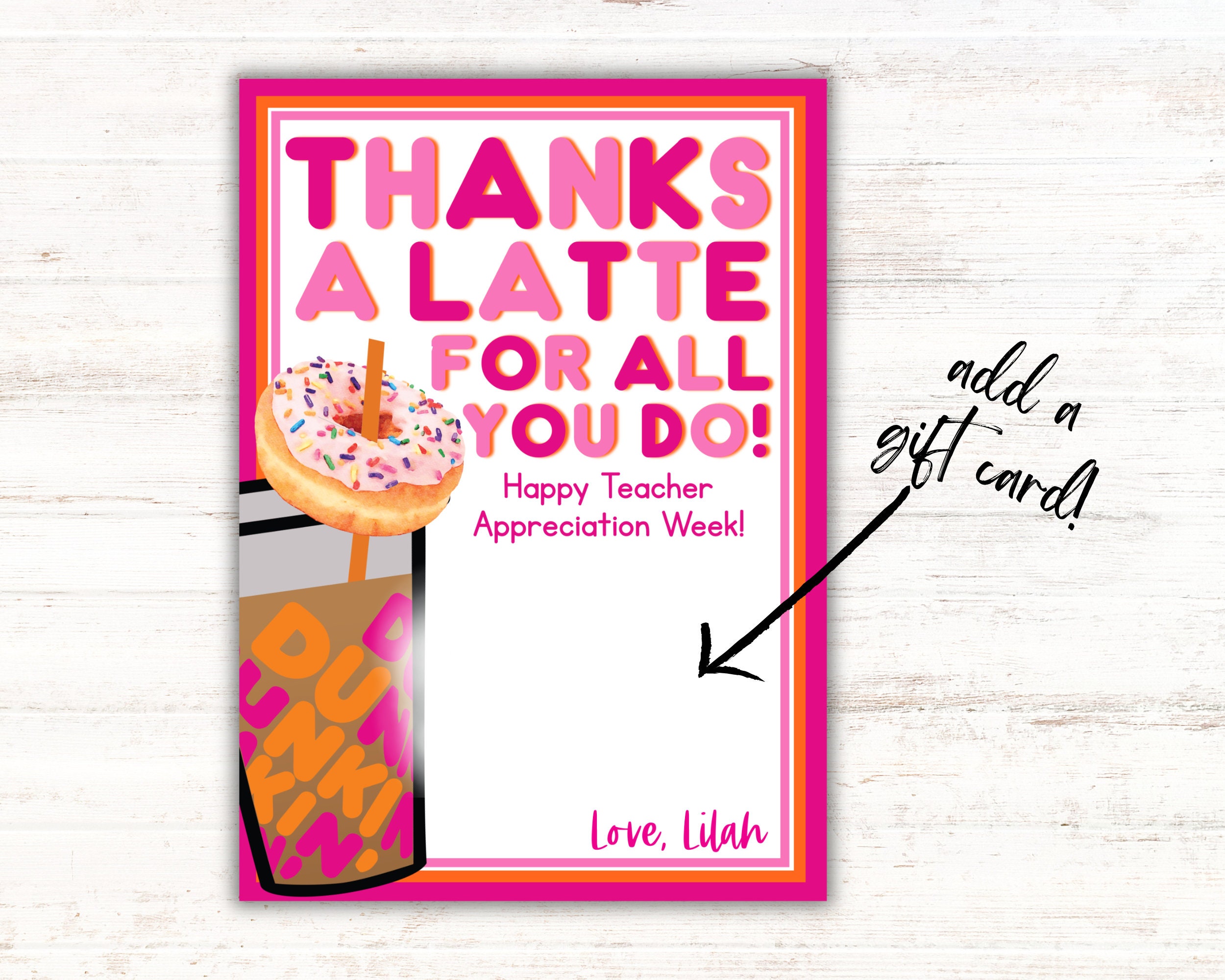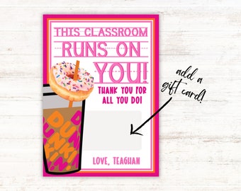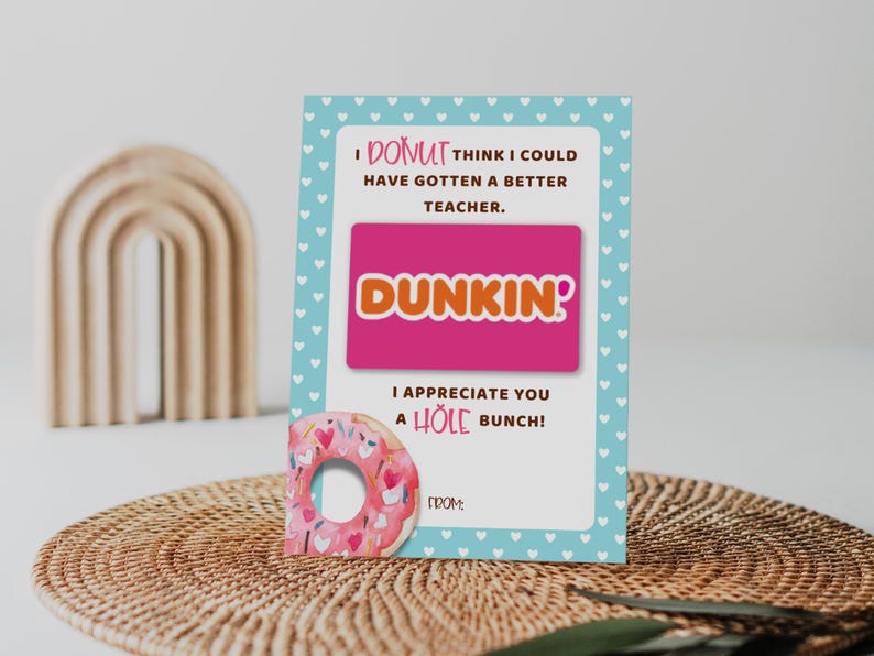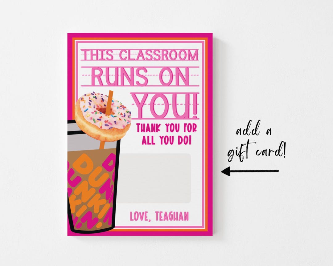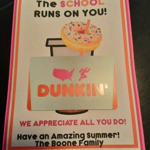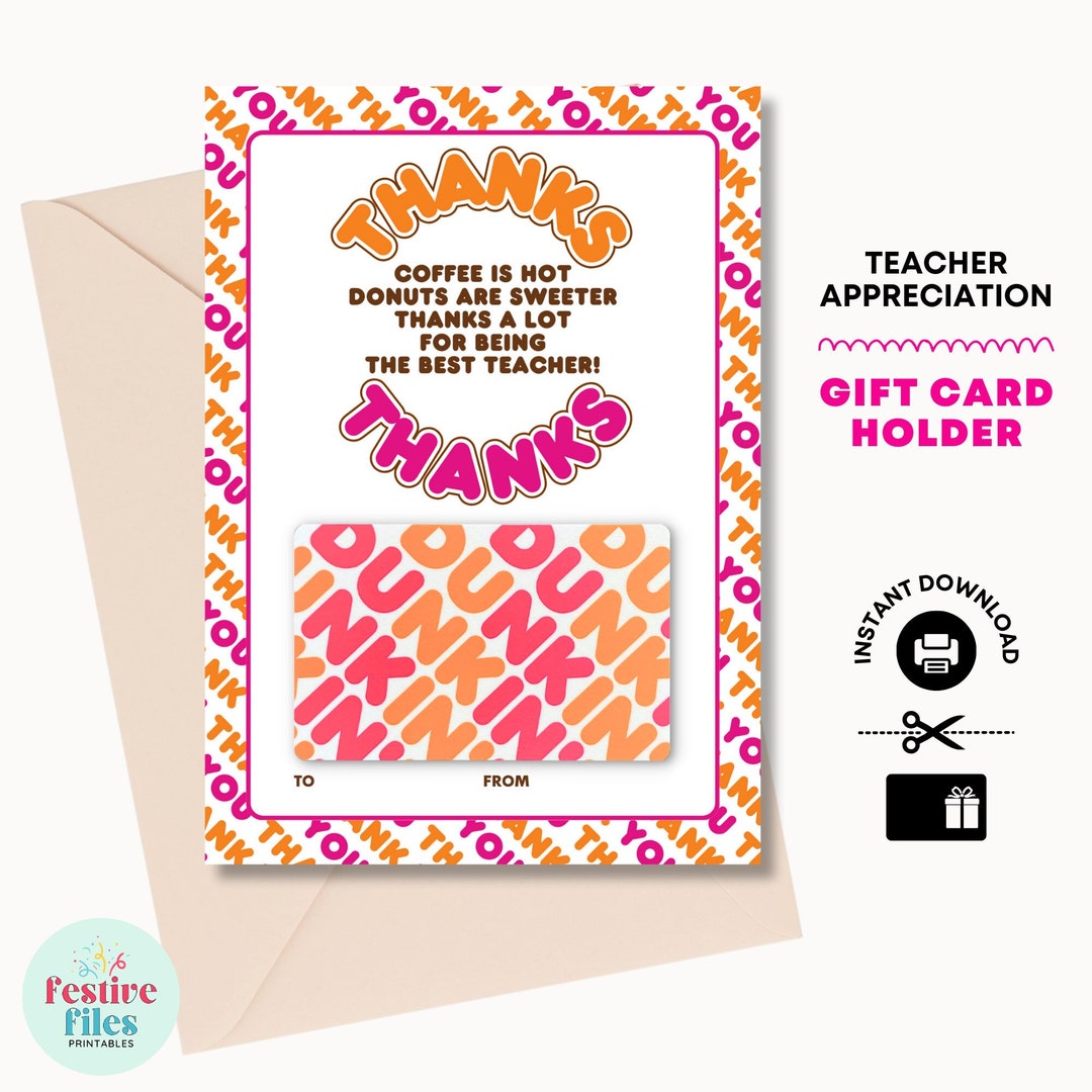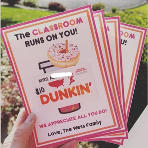 PRINTABLE Teacher Appreciation Dunkin Donuts Gift Card Etsy