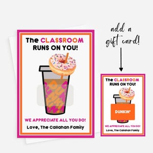 PRINTABLE Teacher Gift Card Holder Appreciation Dunkin Donuts Coffee