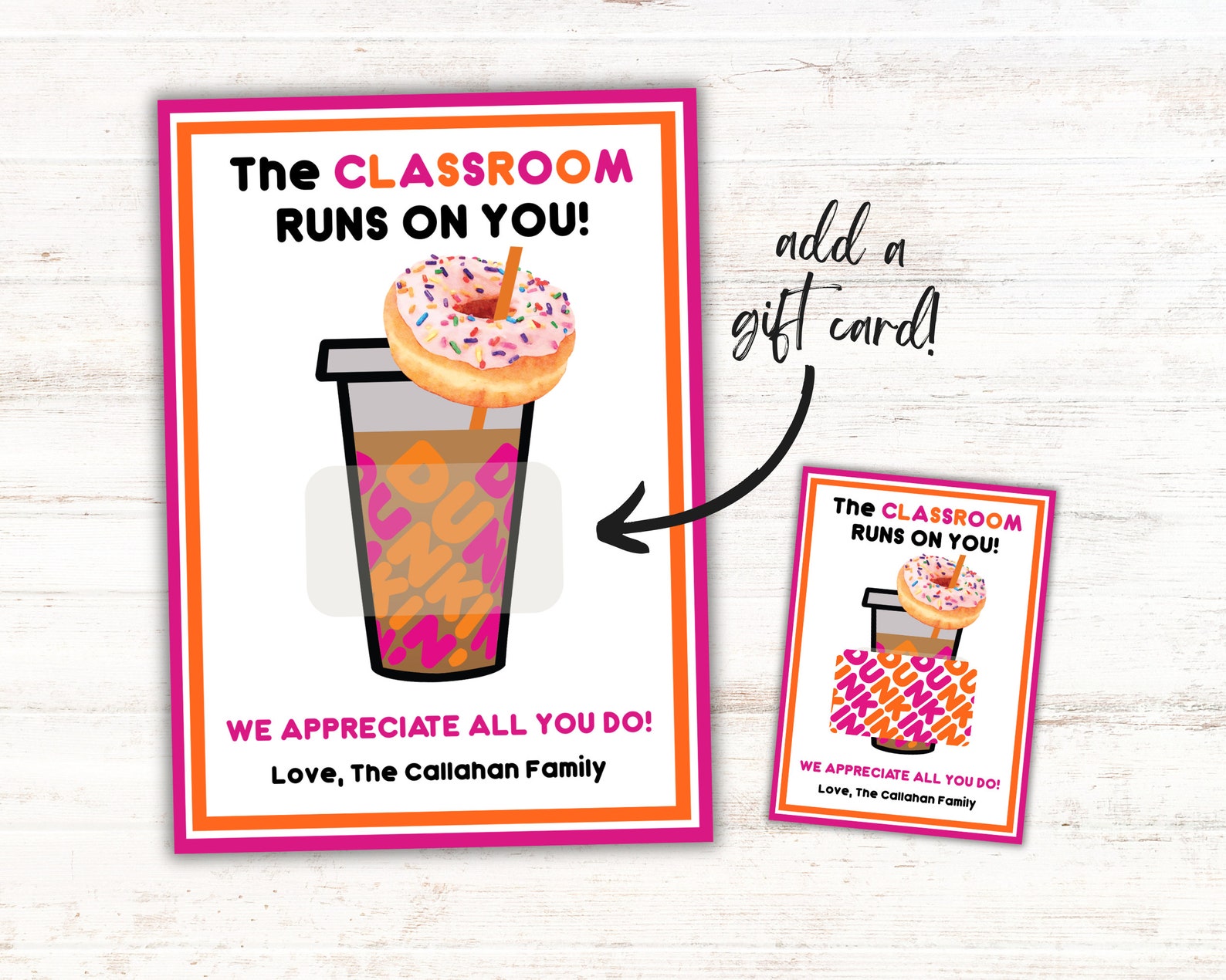 Teacher Appreciation Dunkin Donuts Add Gift Card Printable Template