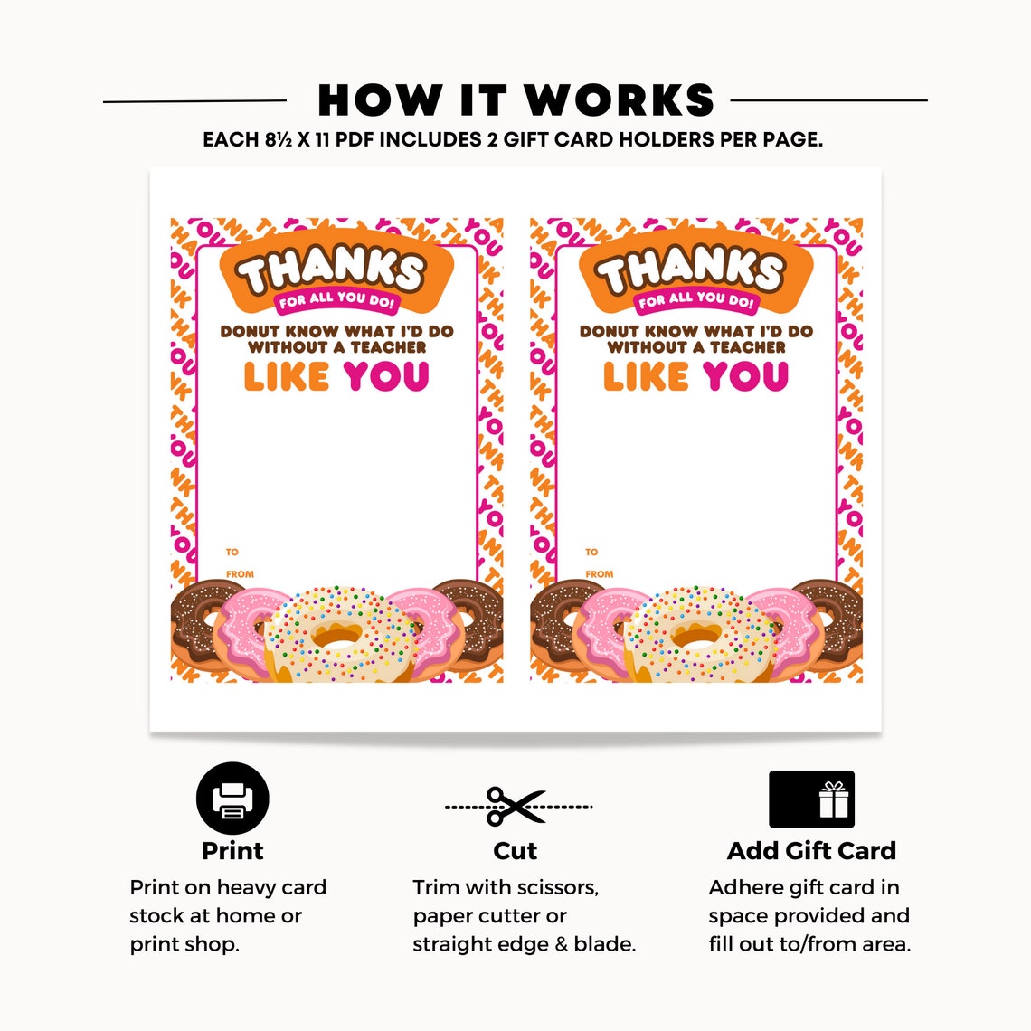 PRINTABLE Teacher Appreciation Dunkin Donuts Gift Card Holder Thank
