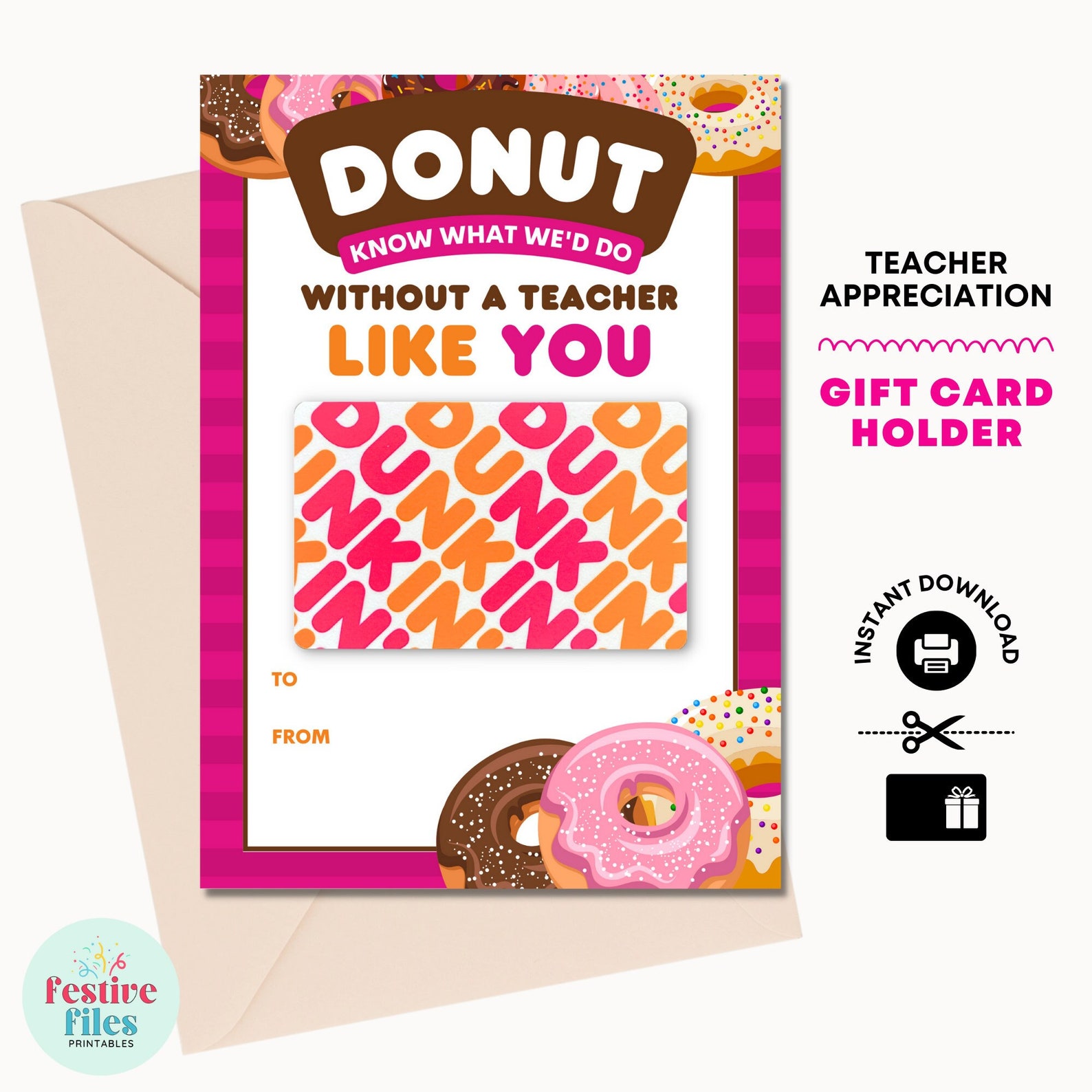 PRINTABLE Teacher Appreciation Gift dunkin Donuts Gift Card Holder