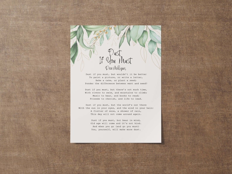 Dust If You Must Poem by Rose Milligan Printable Digital Download