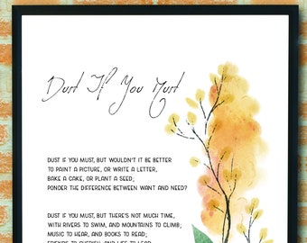 Dust If You Must Poem ART PRINT Poetry Quotes Wall Art Home Decor