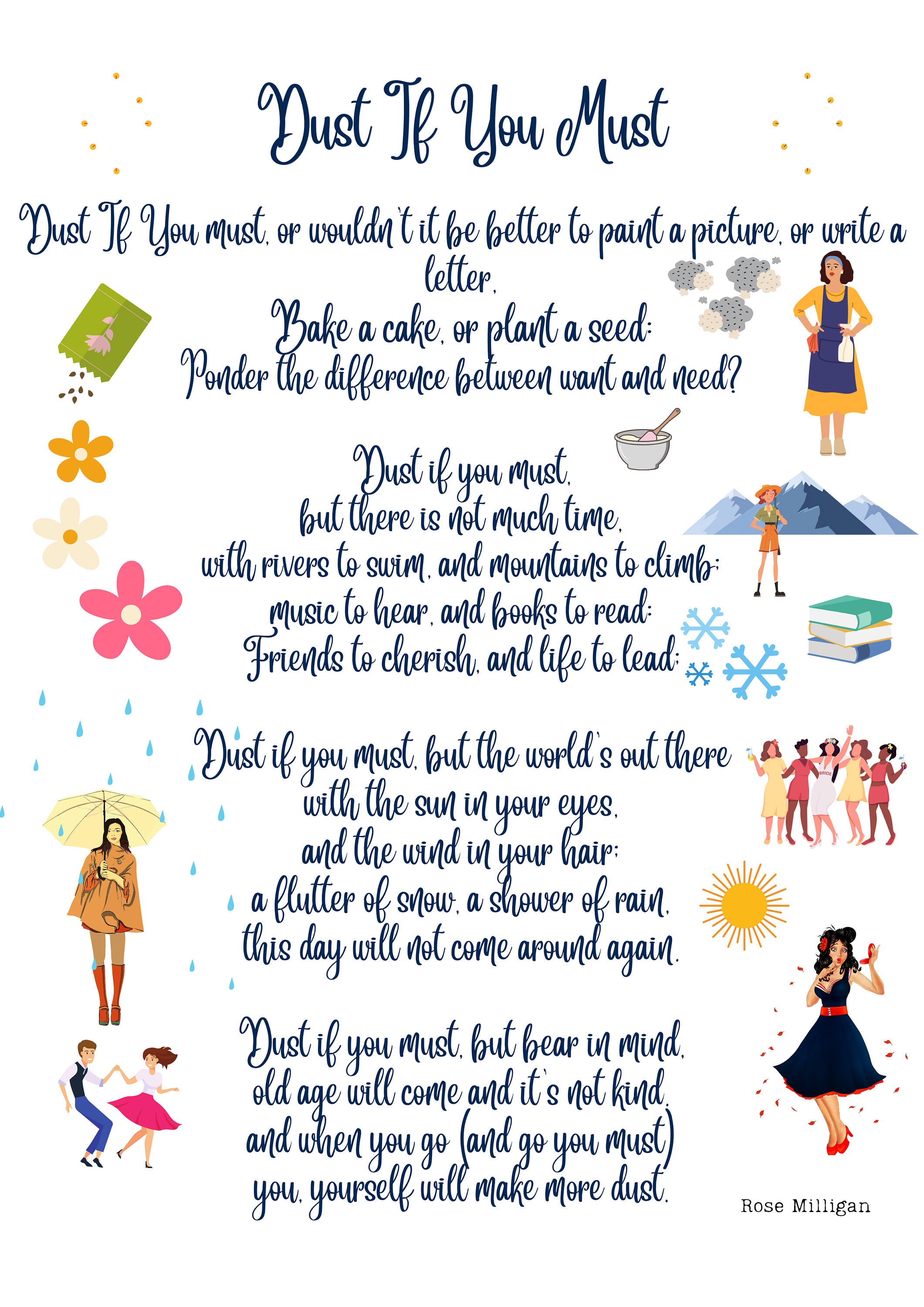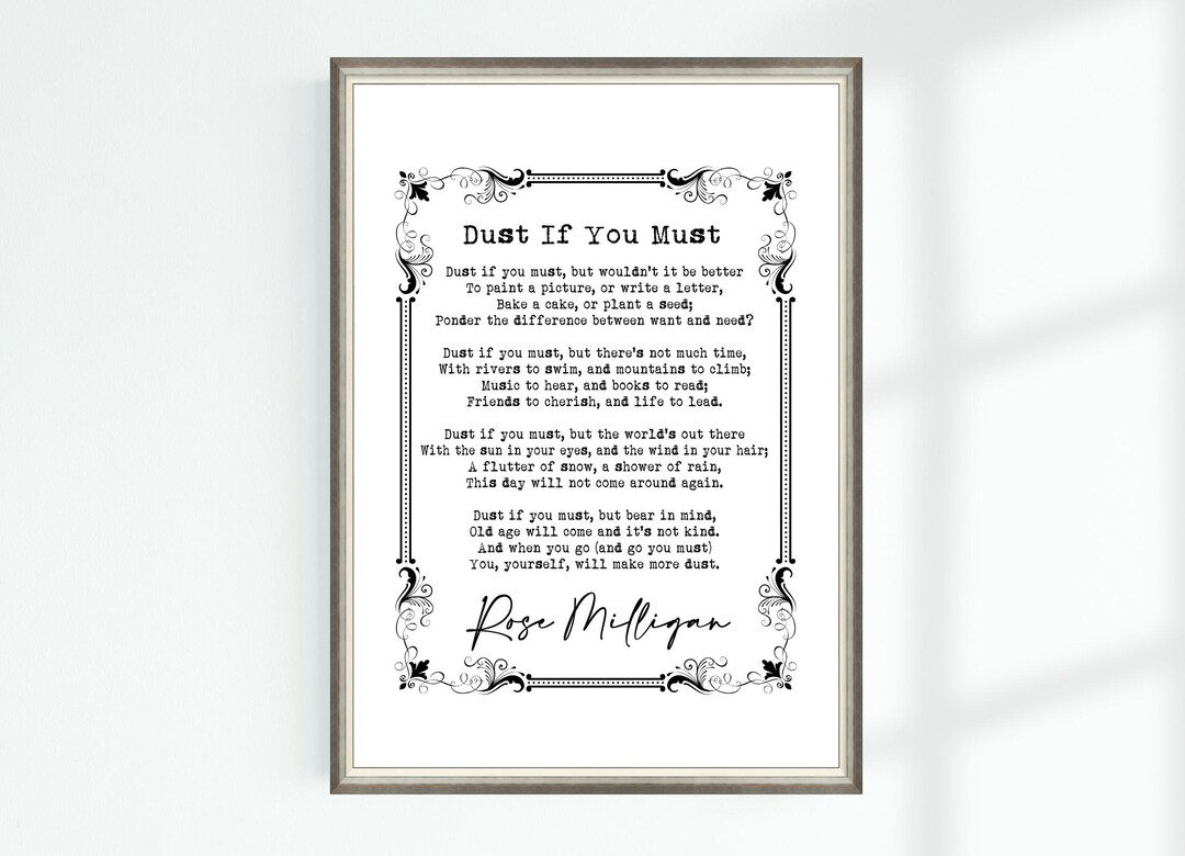 Dust If You Must Poem Poster Print by Rose Milligan Etsy UK