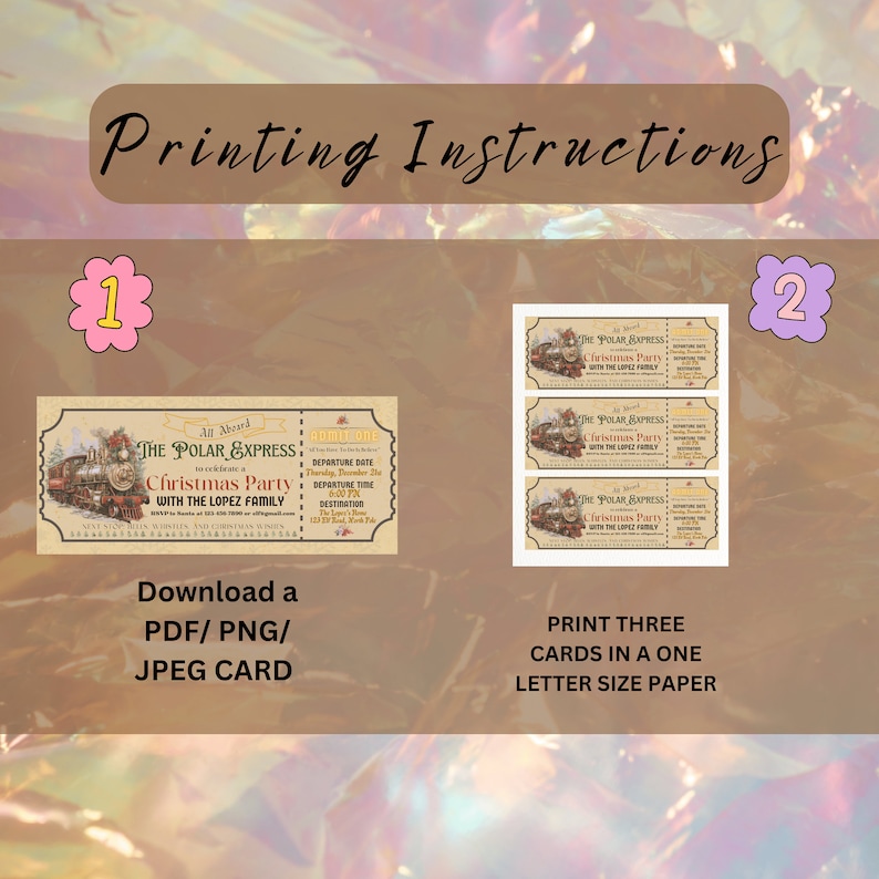 Vintage Polar Express Ticket Invitation Christmas Party Ticket Invite
