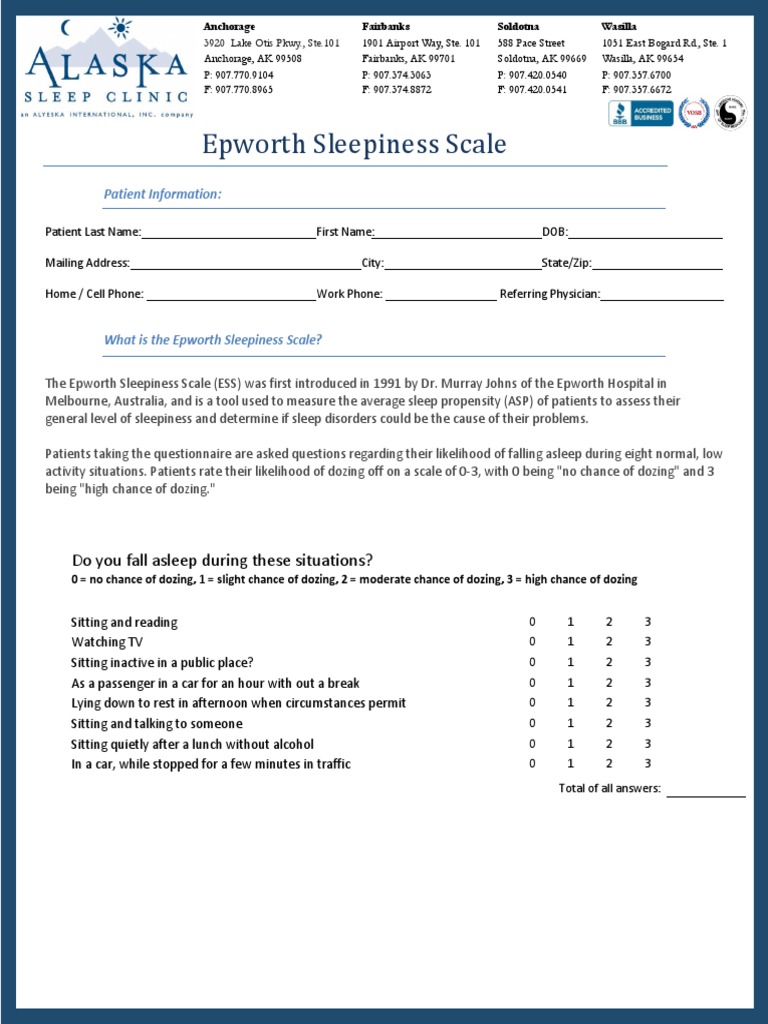 Epworth Sleepiness Scale Printable