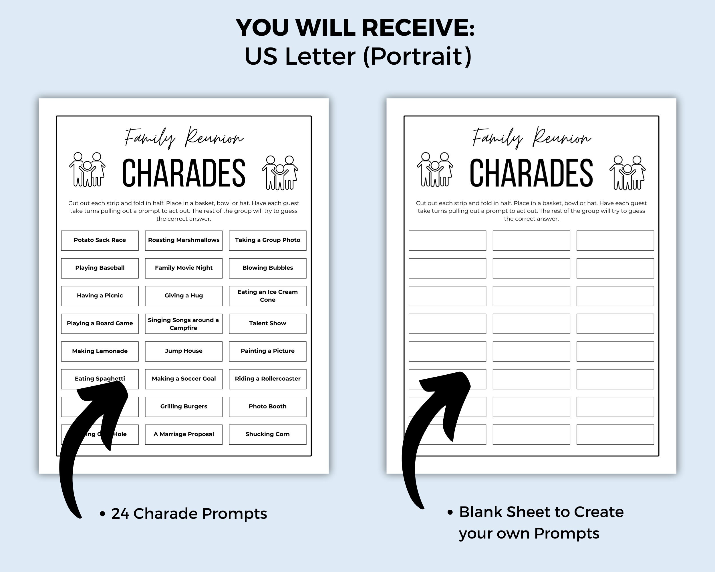 Family Reunion Charades Game Printable Icebreaker Game Charades Words