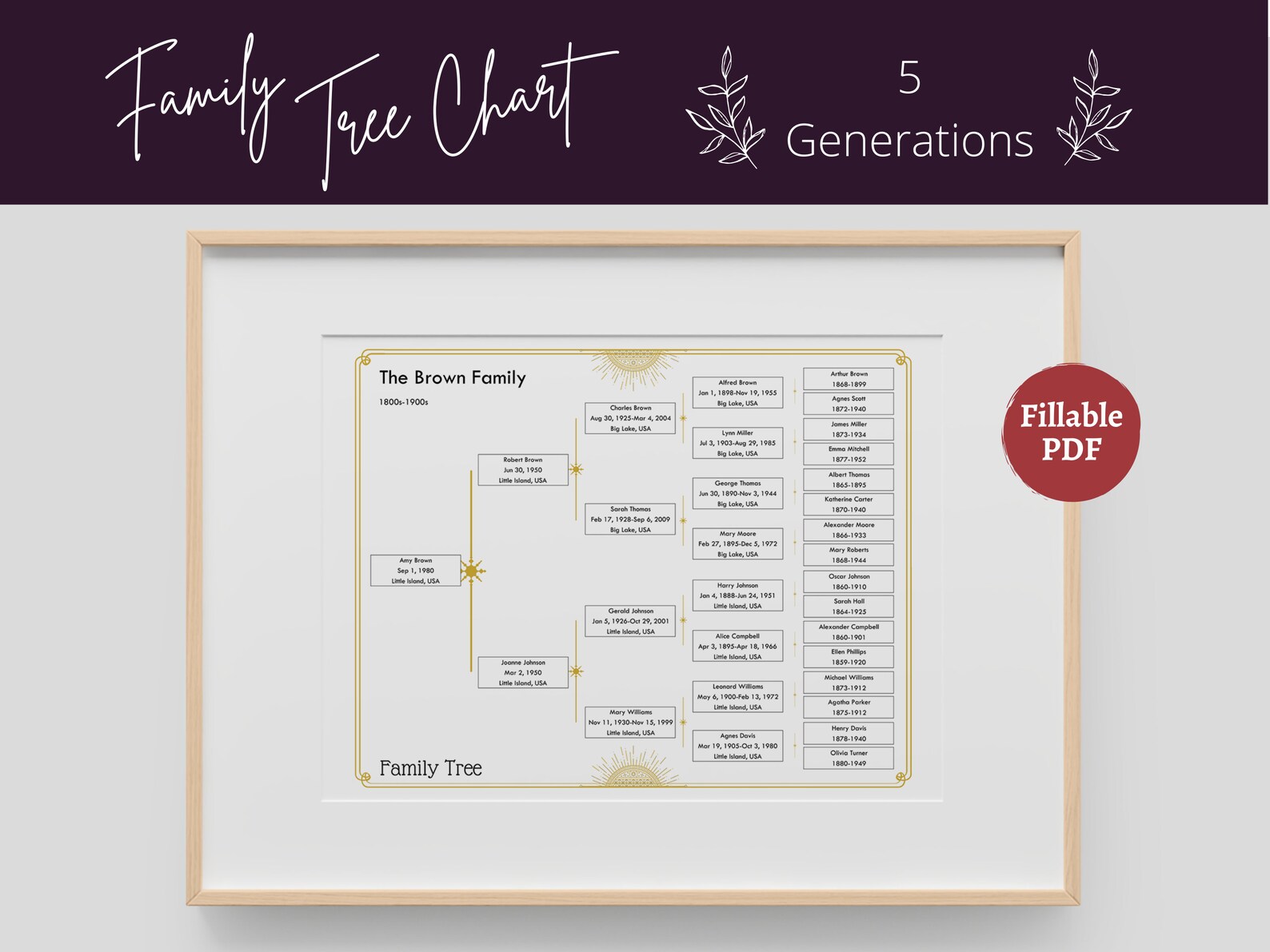 5 Generation Family Tree Template Fillable Pdf Instant Download