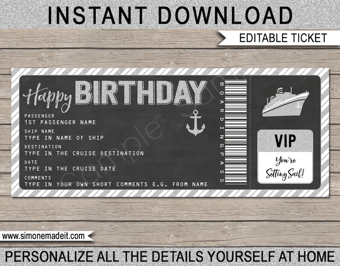 Printable Cruise Ticket Gift Birthday Gift Voucher Certificate