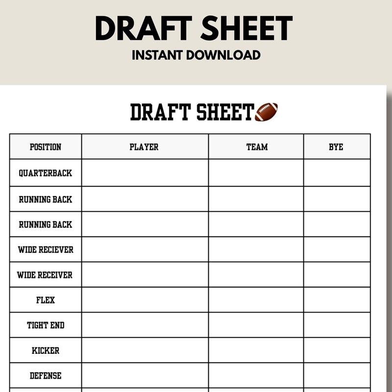 Nfl 2025 2026 Fantasy Football Draft Sheet Etsy New Zealand