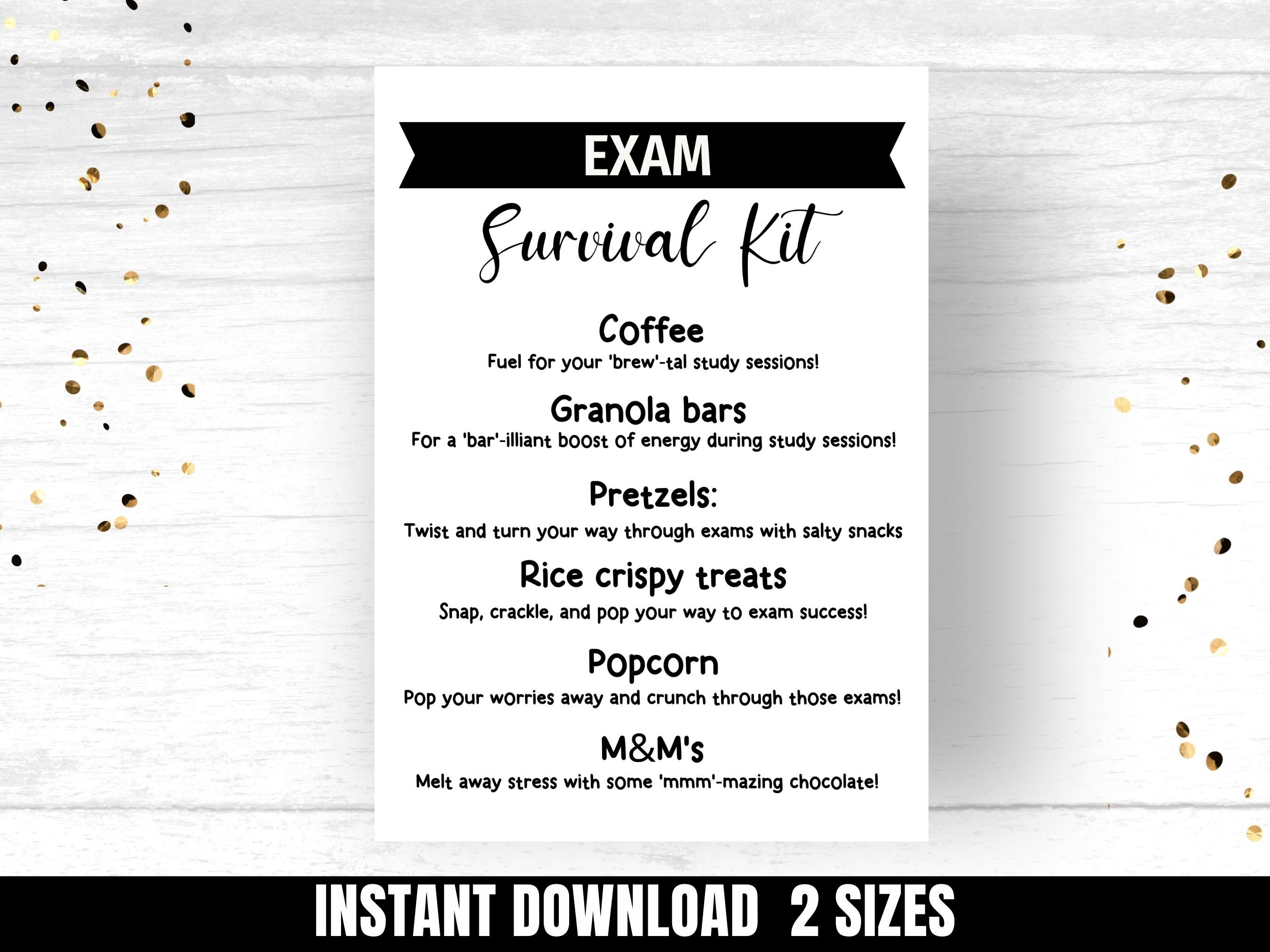 Exam Survival Kit Gift Printable Exam Prep Survival Gift Final Exam