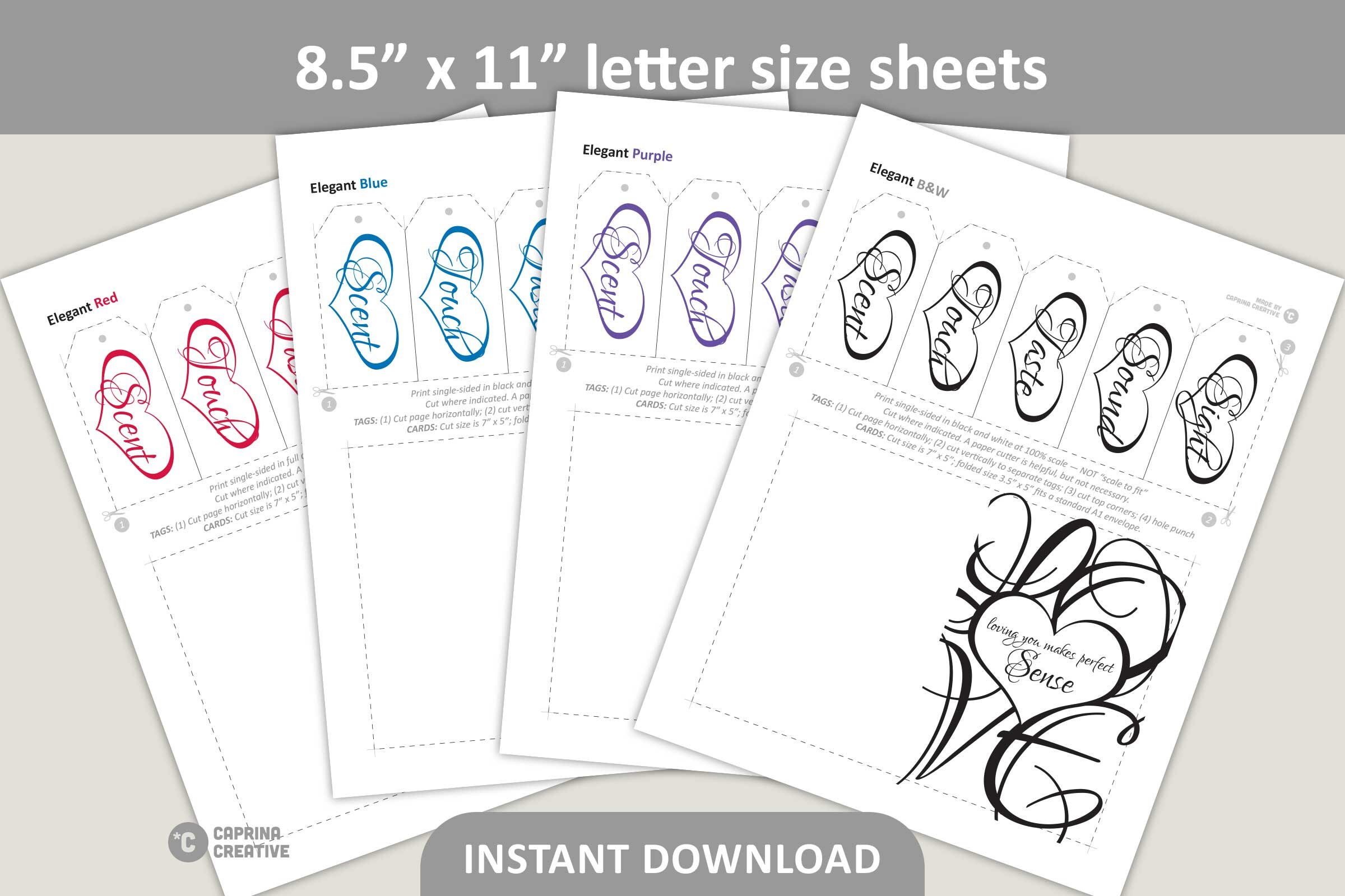 Five Senses Gift Tags Card 5 Senses Wedding Gift Instant Download