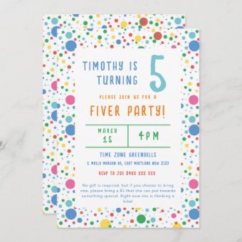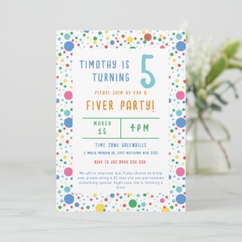 Colourful Pokadot Fiver Party Birthday Invitation Zazzle