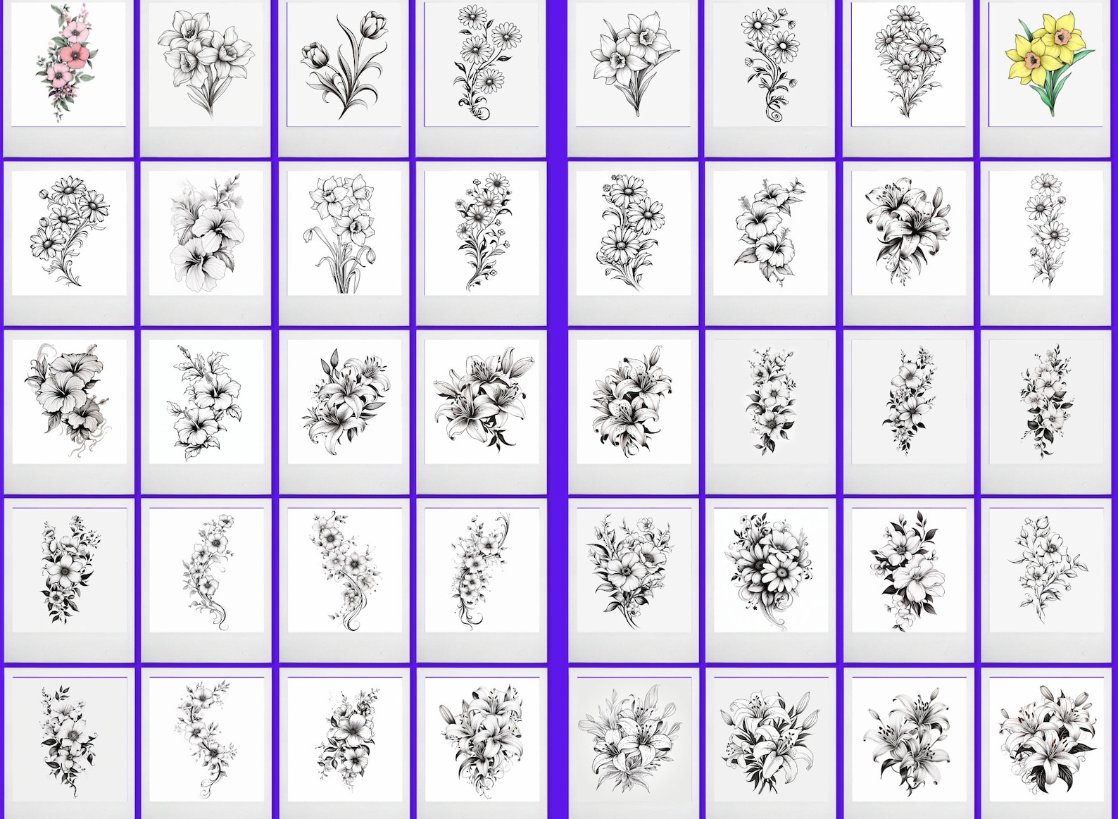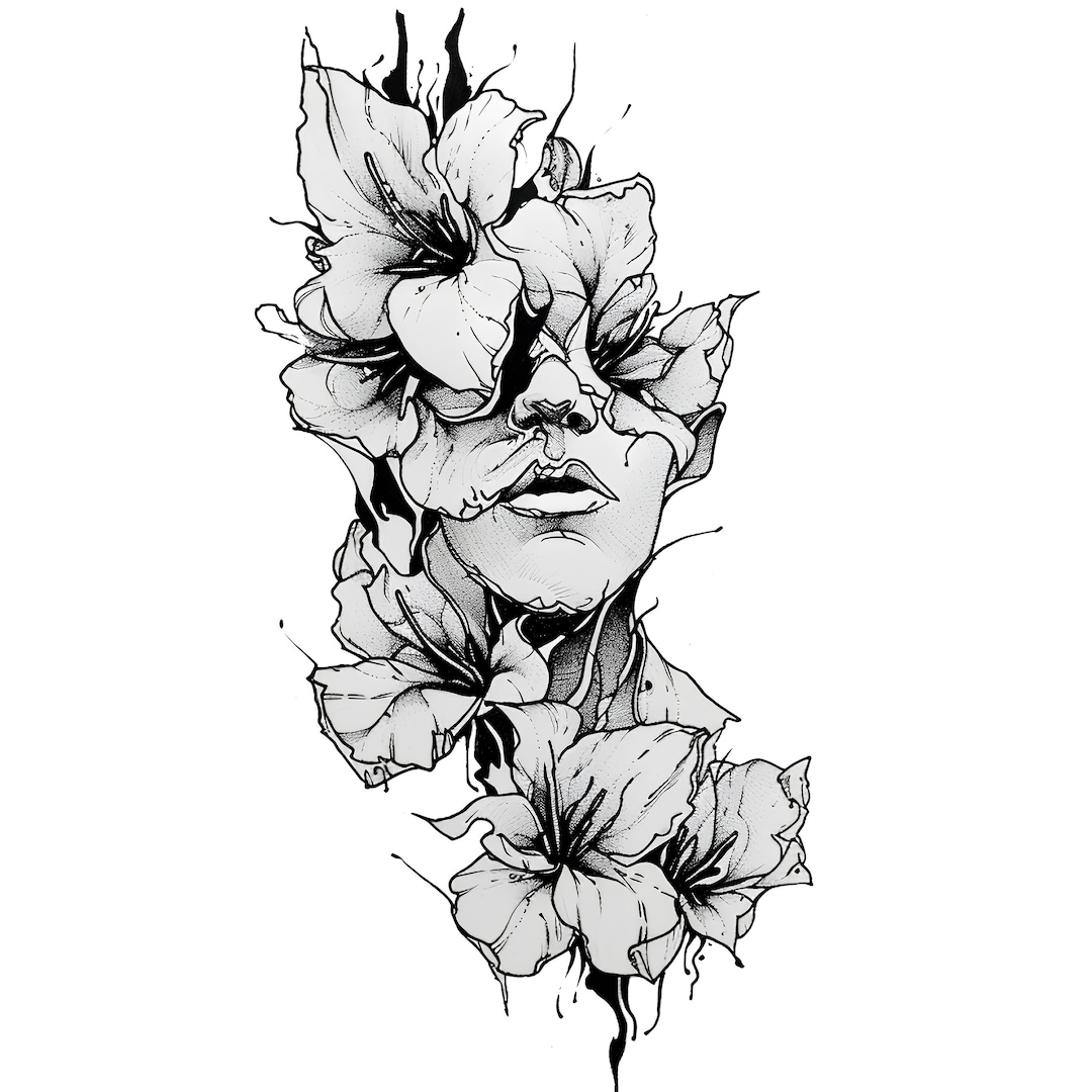 Flower Tattoo Design Printable Stencil Instant Download Custom Tattoo
