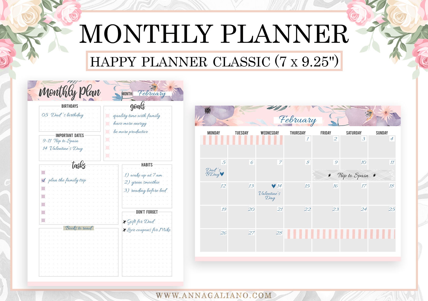 Happy Planner Inserts Printable Happy Planner Monthly Etsy